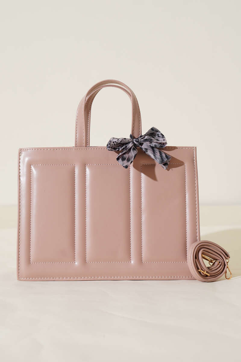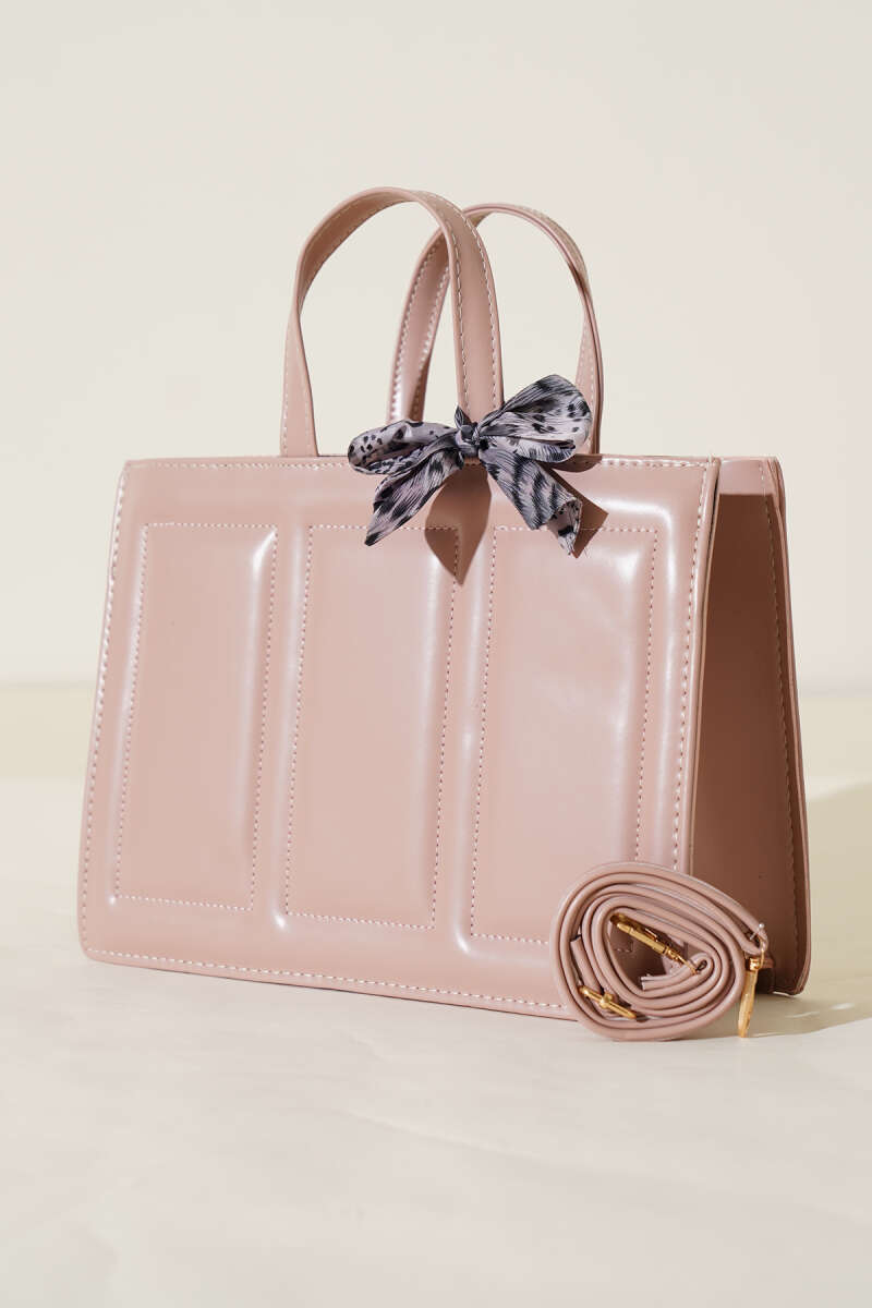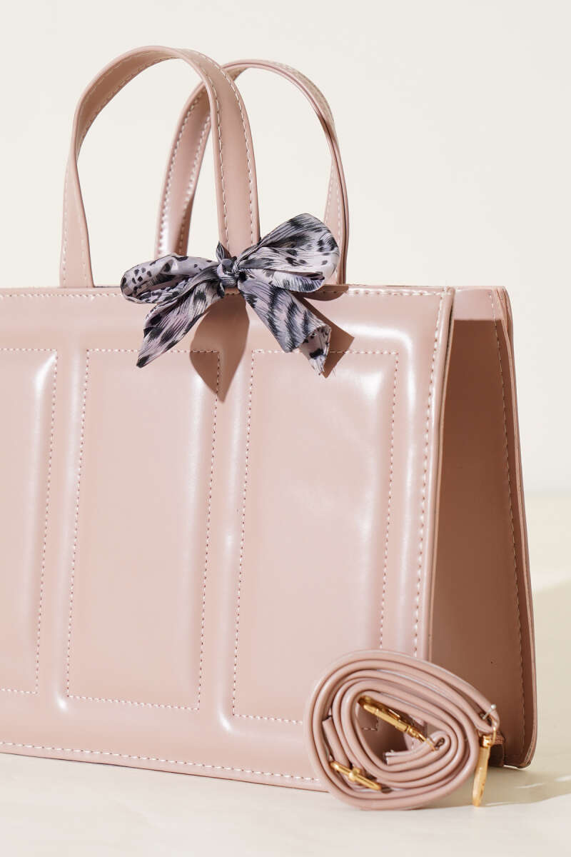 Dikiş Detaylı Fularlı Çanta Pudra