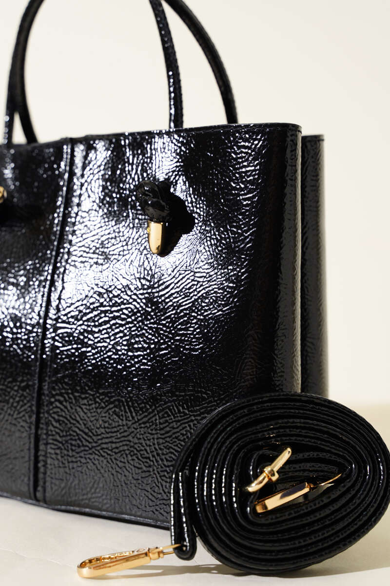 Dikiş Detaylı Kadın El Çantası Siyah Kroko