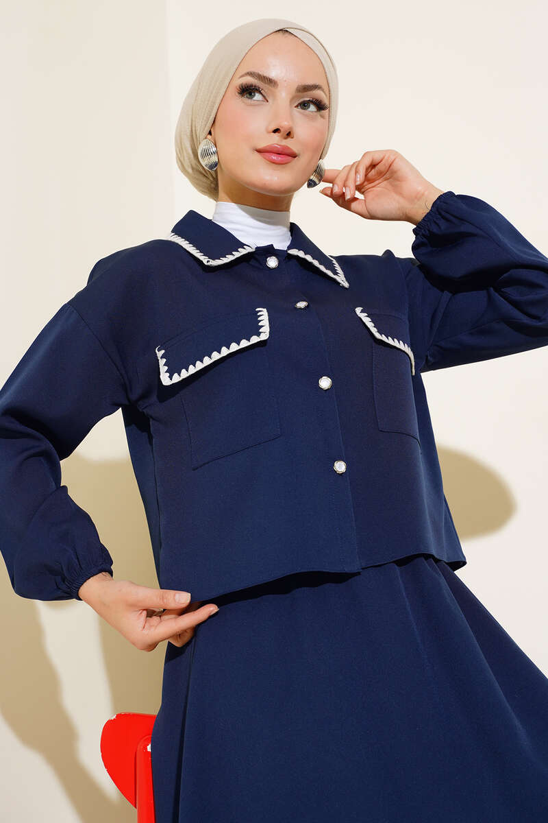 Yeni sezon ikili takım modelimiz sizlerle beraber. Ceketimizin yakası ve cep kapağı dikiş detaylıdır. Ceketimizin iki adet cebi vardır. Ceketimizin kol bilekleri lastiklidir. Ceketimizin önü düğmelidir. Eteğimizin beli lastiklidir. Eteğimizin ucu dikiş detaylıdır. Renk seçeneklerimiz mevcuttur. Dolabınızdaki yerini bekliyor.