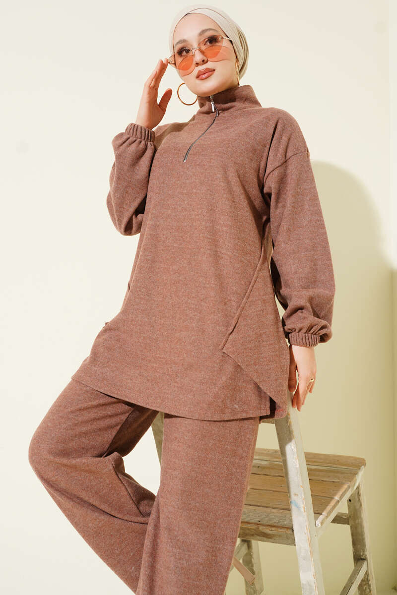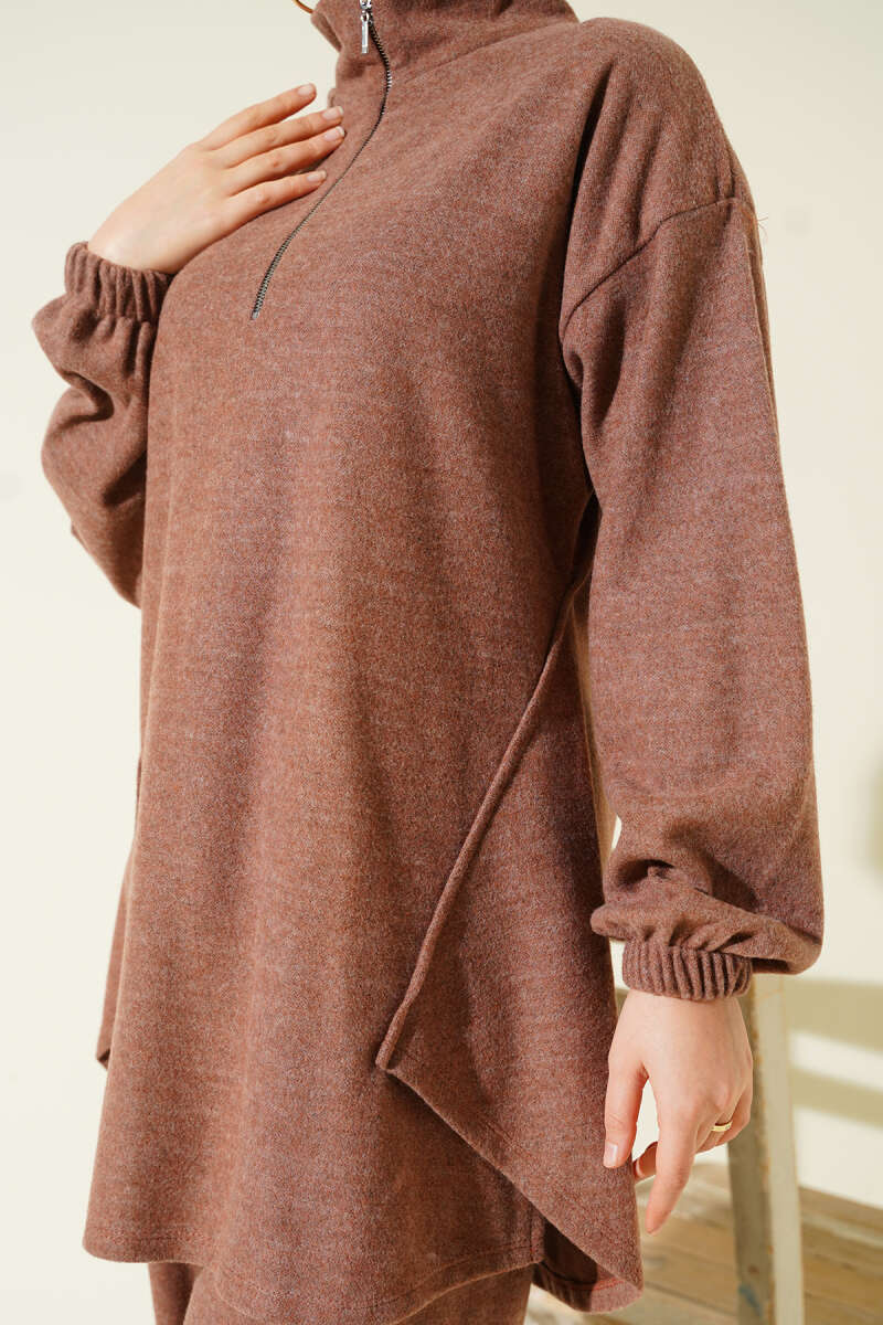 Dikişli Yarım Fermuarlı Kaşe İkili Takım Füme