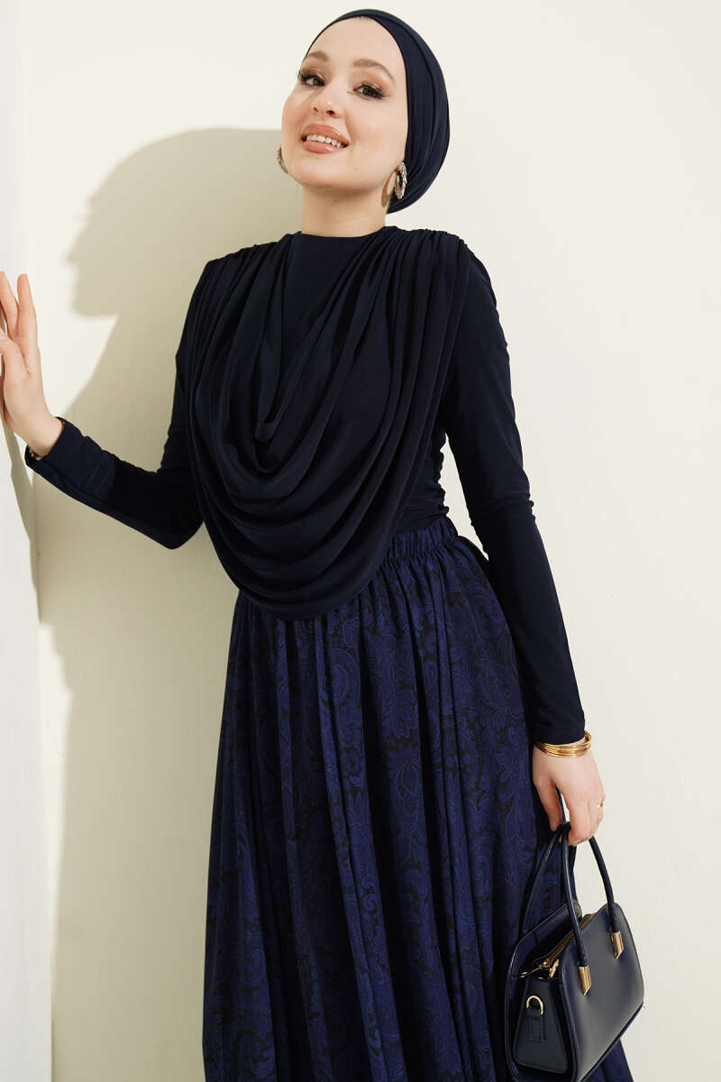 Dökümlü Yaka Desenli İkili Takım Lacivert