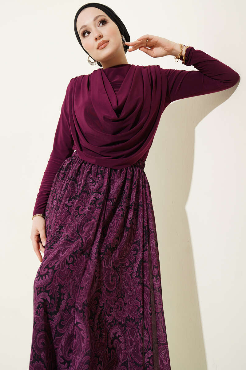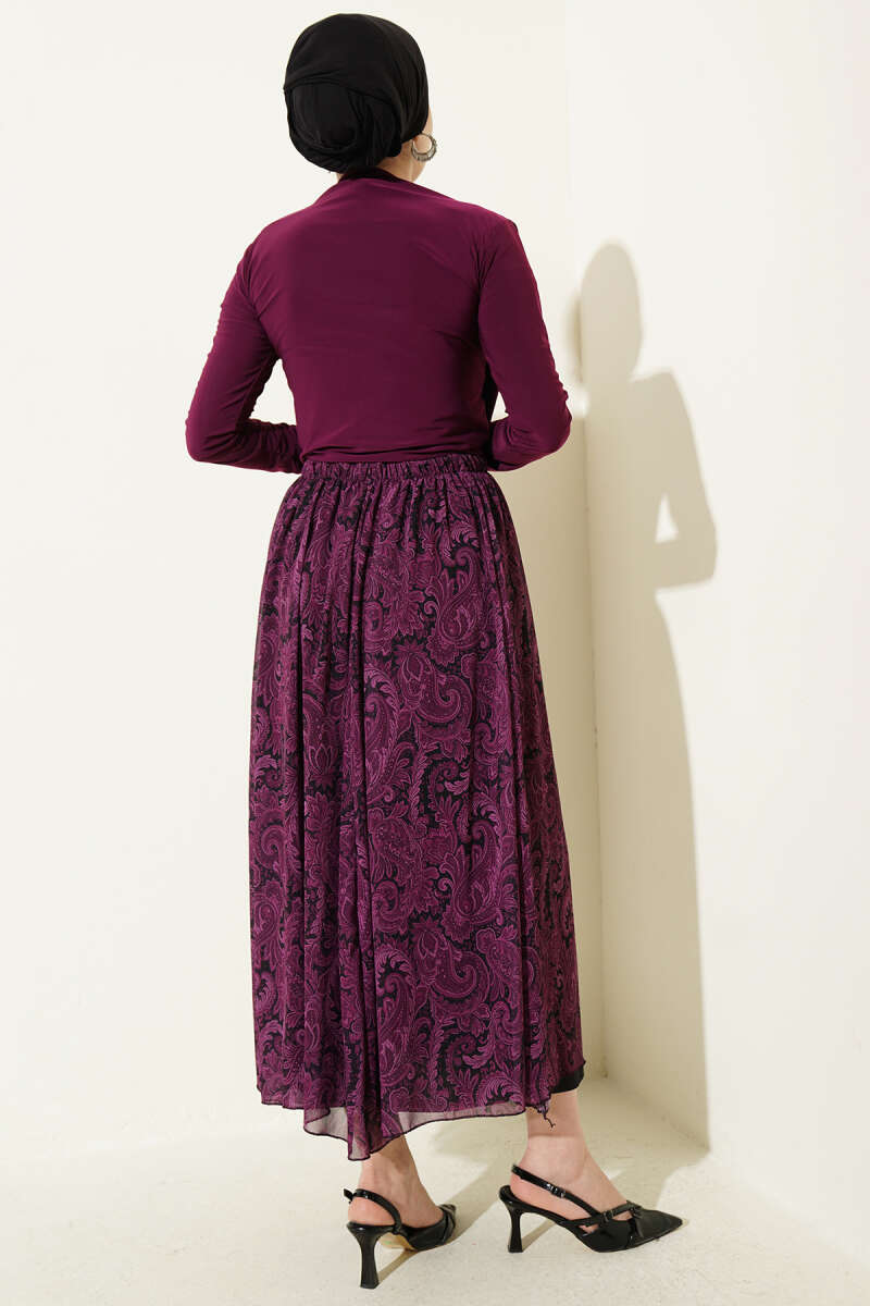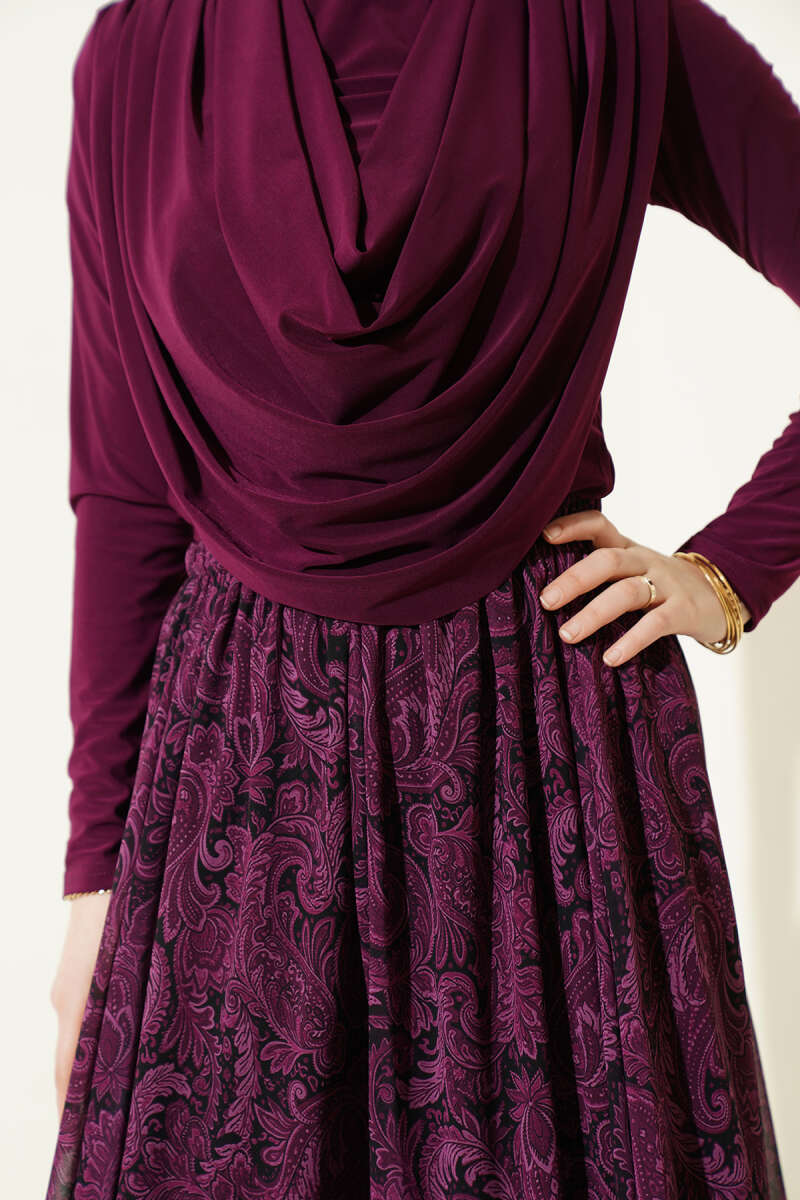 Dökümlü Yaka Desenli İkili Takım Mürdüm