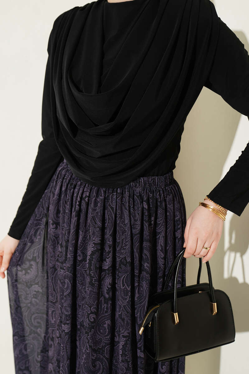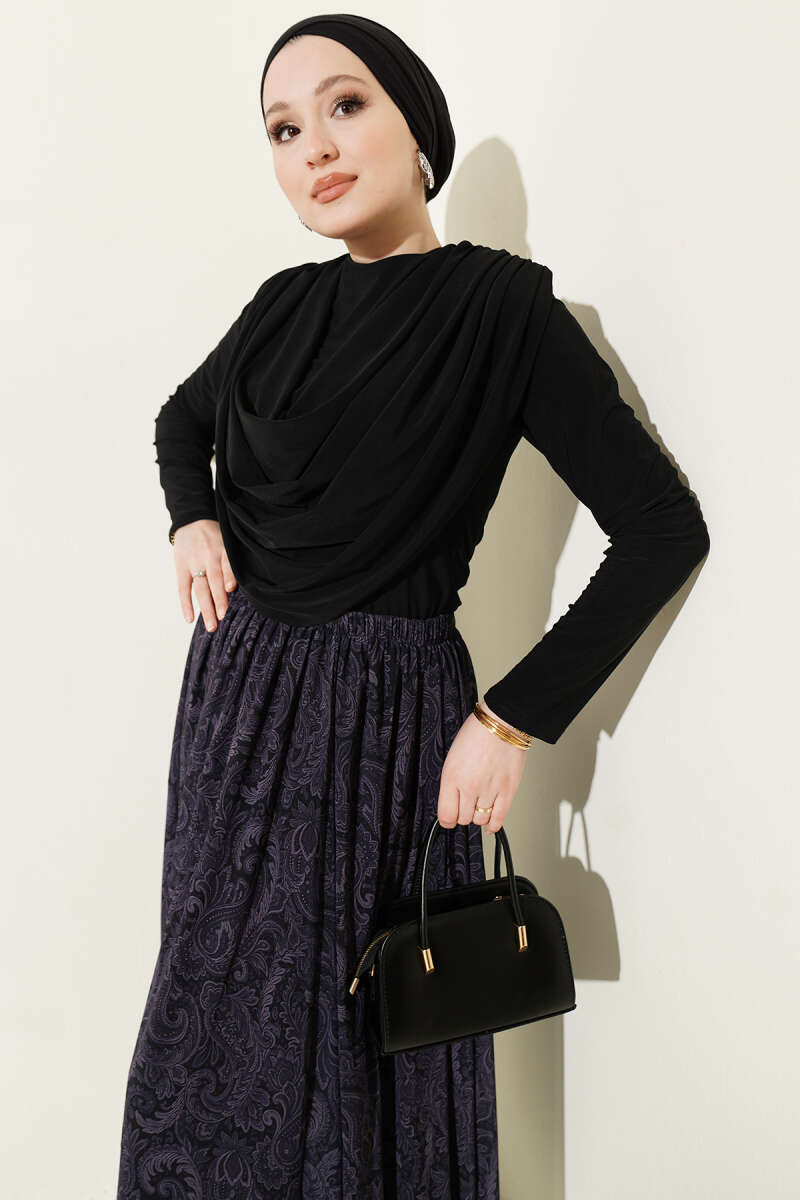Modern hatları klasik desenlerle buluşturan bu özel tasarım ikili takım, sofistike bir duruş sergilemek isteyen kadınlar için tasarlandı. Üst parçadaki dramatik yaka detayı ve eteğin akışkan formuyla hem özel davetlerde hem de şık akşam yemeklerinde tüm bakışları üzerinizde toplayın.