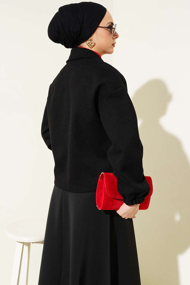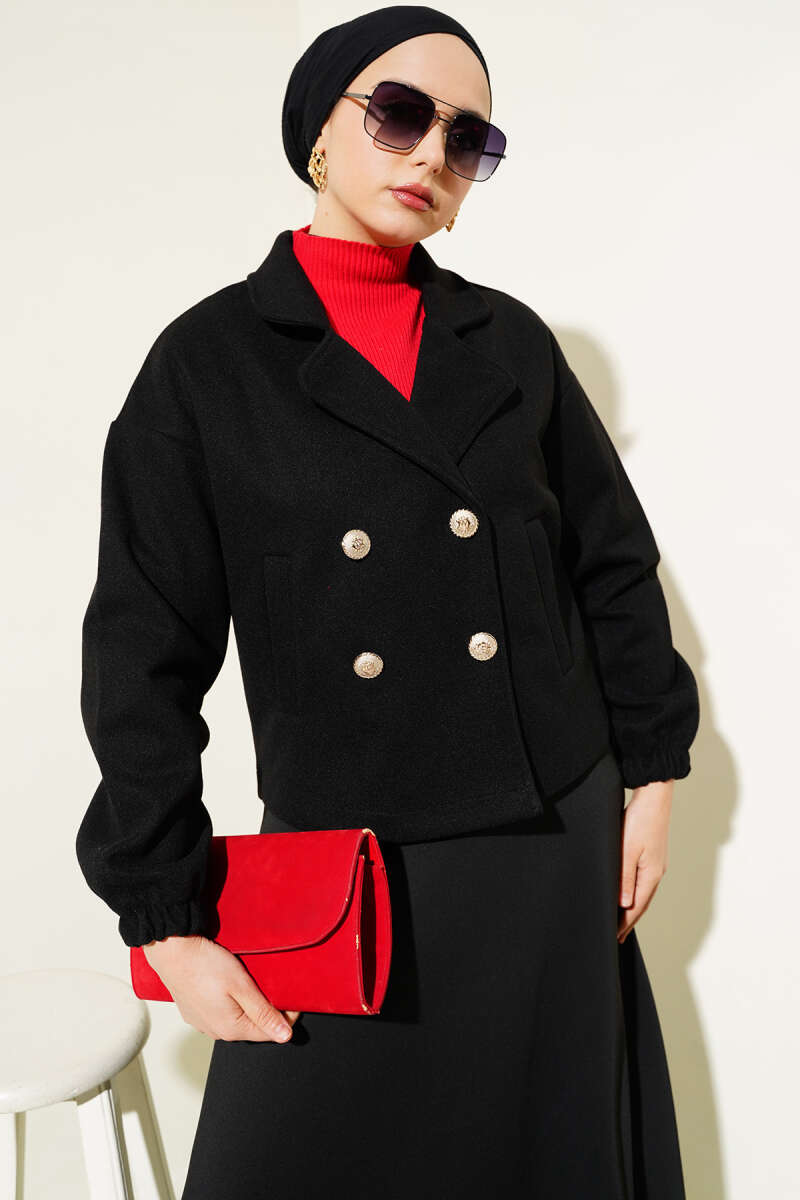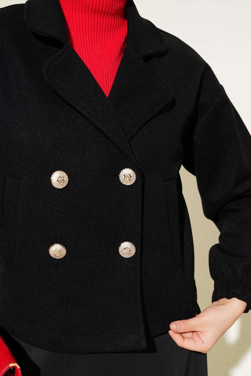 Dört Düğmeli Kısa Kaşe Kaban Siyah