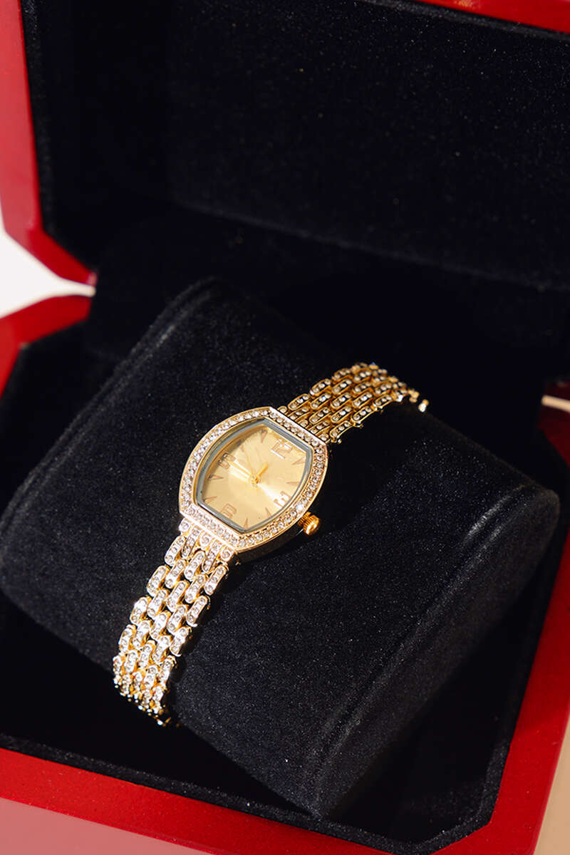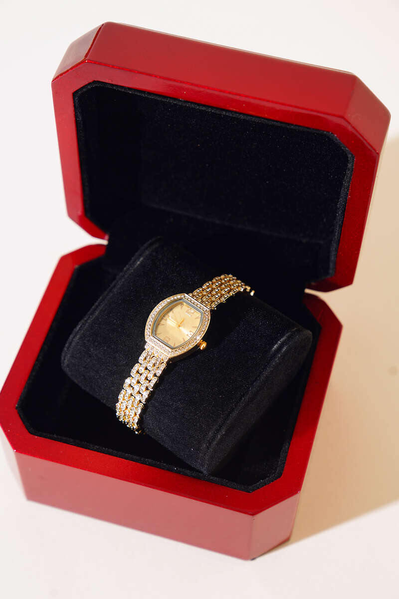 Dörtgen Çerçeveli Taşlı Kadın Saat Gold