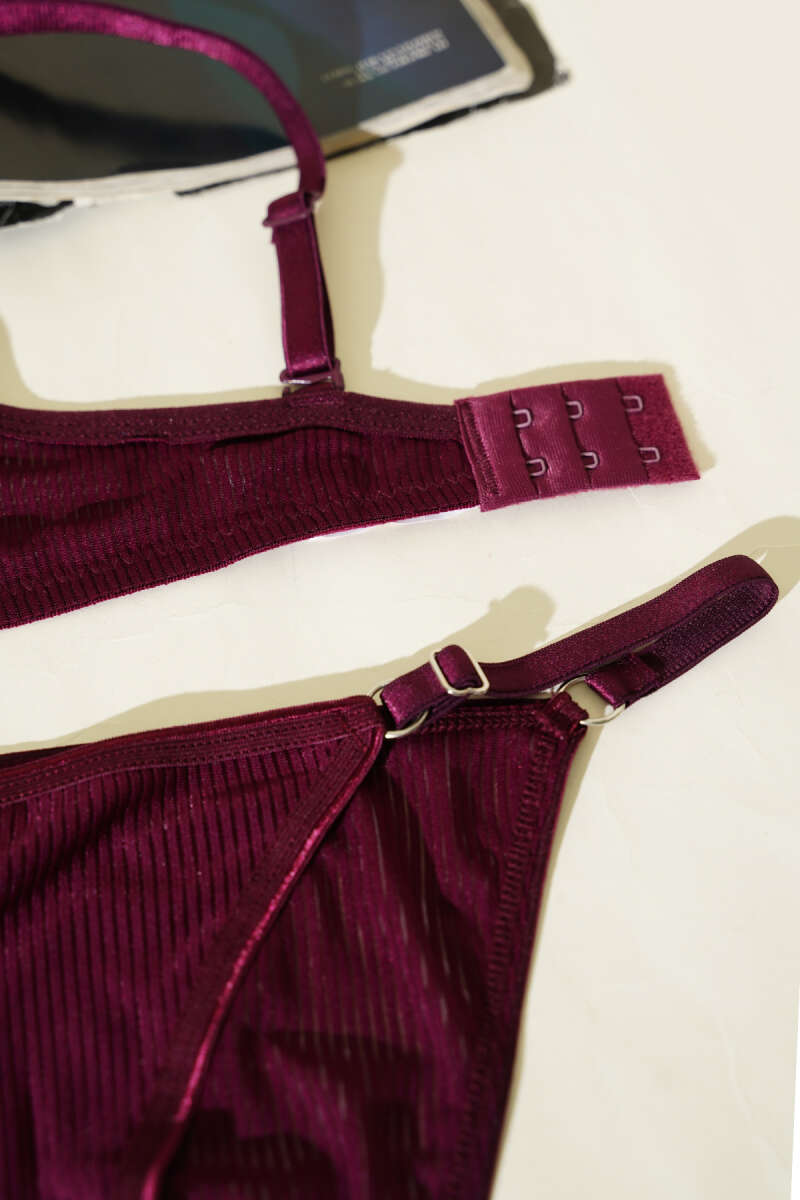Double Push Up Fitilli Sütyen Takım Mürdüm