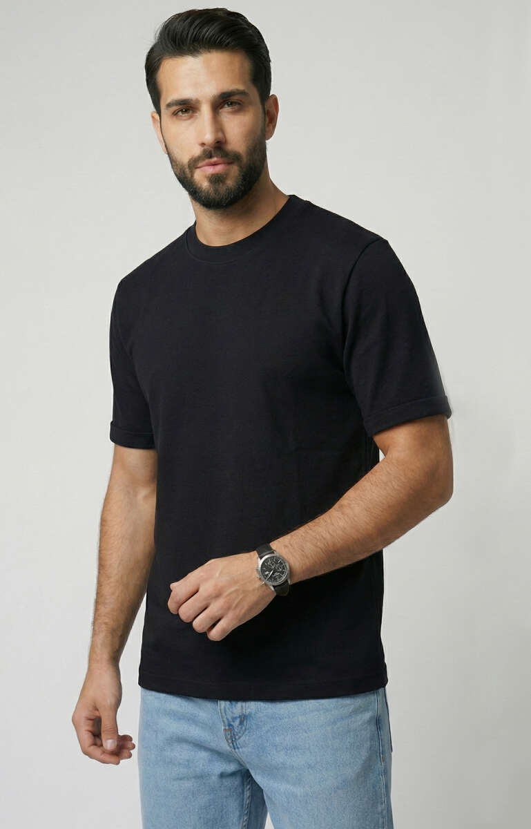 Bisiklet Yaka Waffle Erkek Sweatshirt Siyah