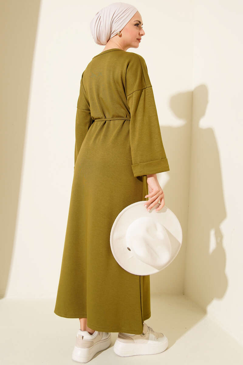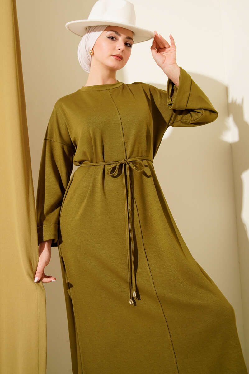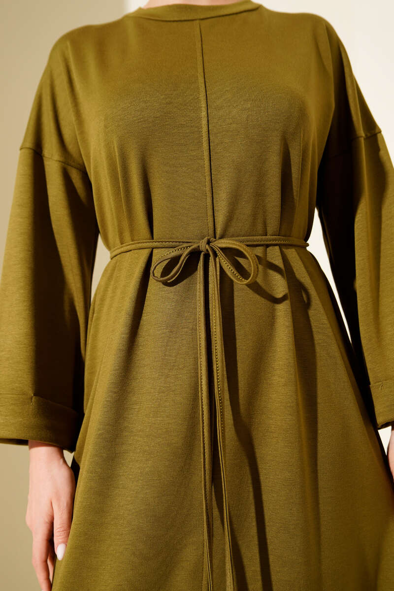Duble Kol İp Bağcıklı Elbise Haki