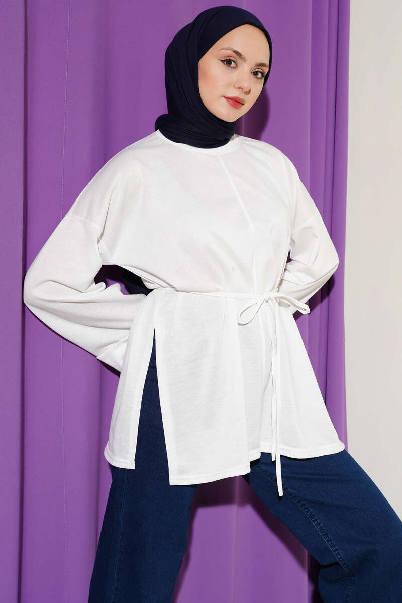 Beli Lastikli Çımalı Pantolon Beyaz