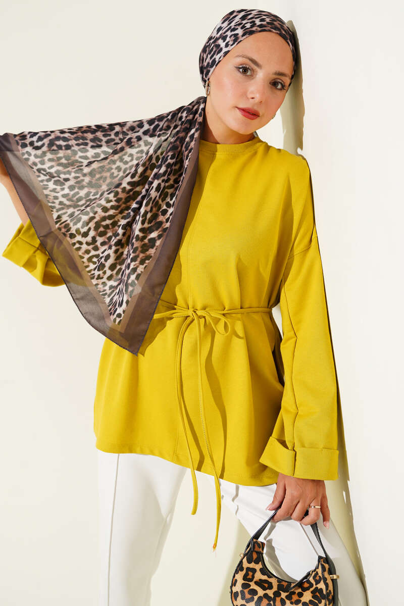 Kol Armalı Loyşa İp Kuşaklı Tunik Kahve