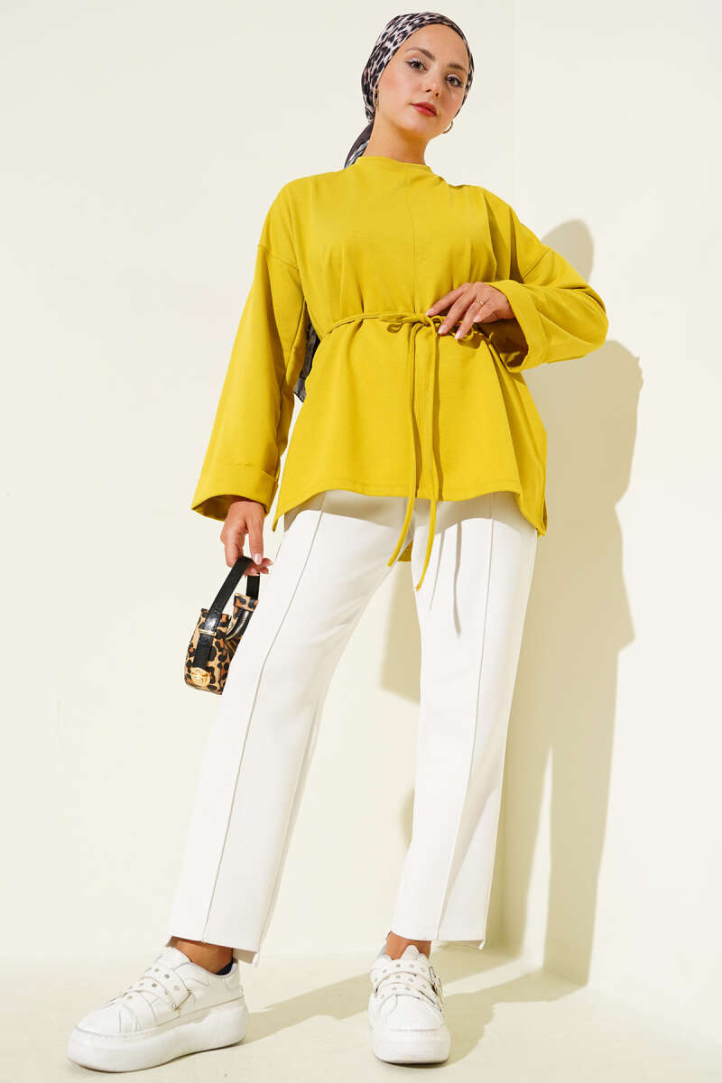 Kol Armalı Loyşa İp Kuşaklı Tunik Ekru