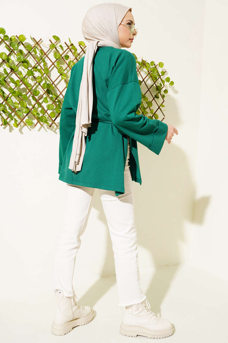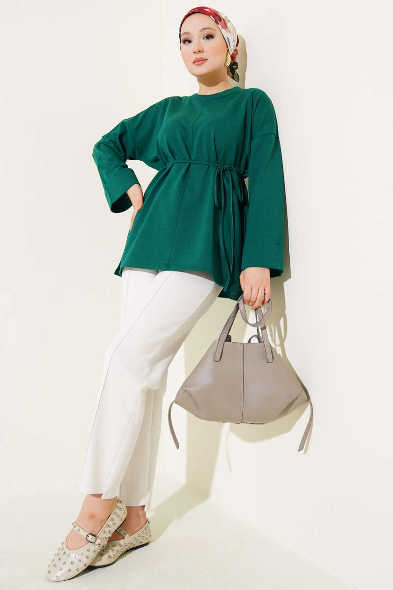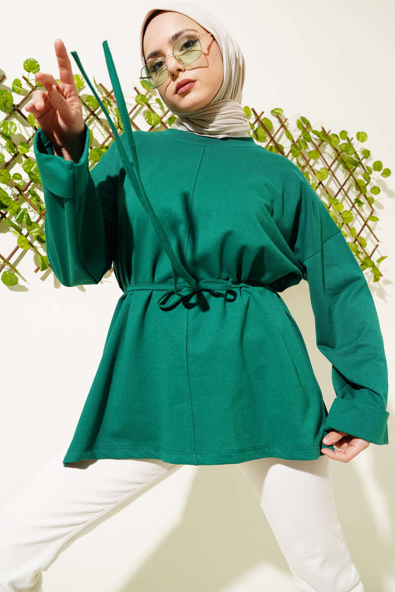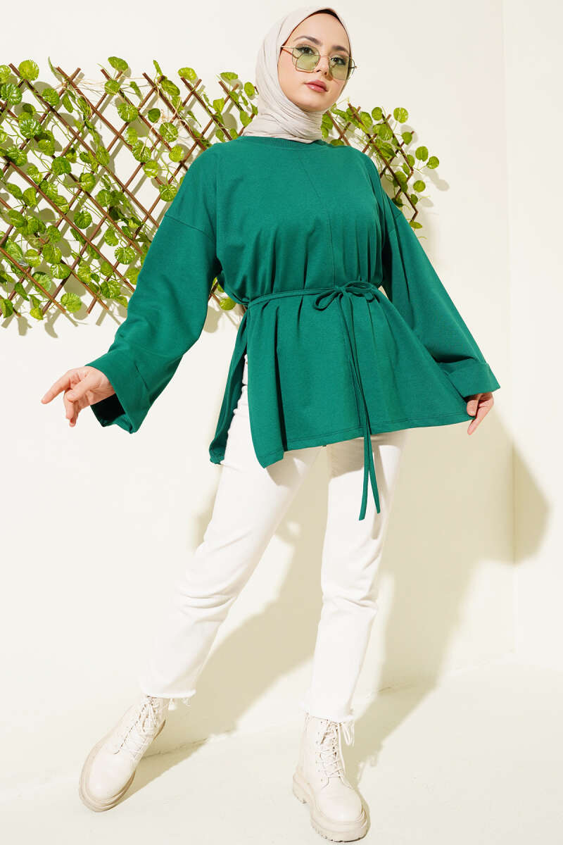 Duble Kol İp Bağcıklı Tunik Zümrüt