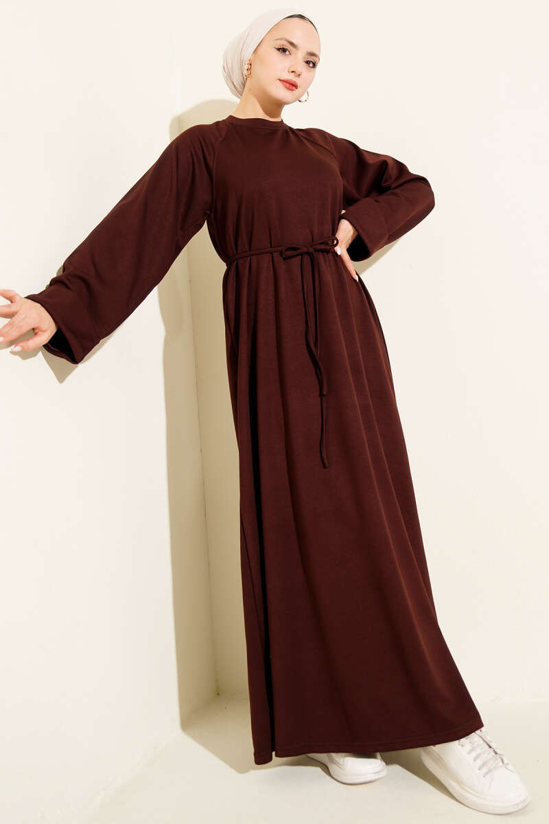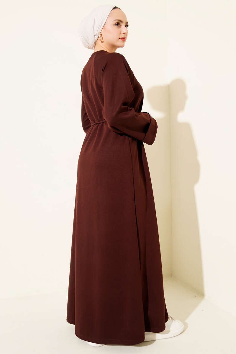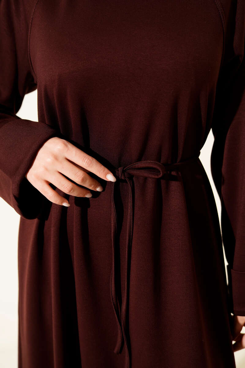 Dik Fitilli Kuşaklı Basic Elbise Kahve