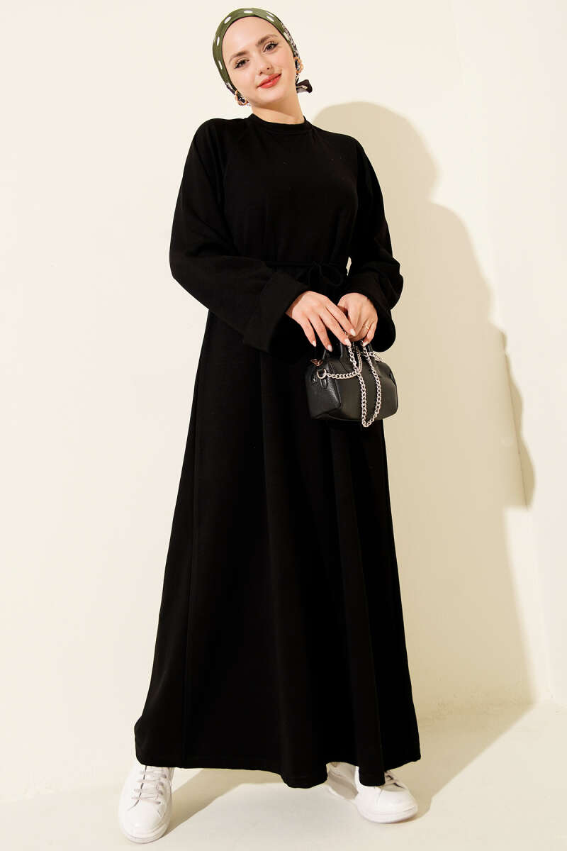 Düğmeli Tensel İnce Kemerli Elbise Siyah