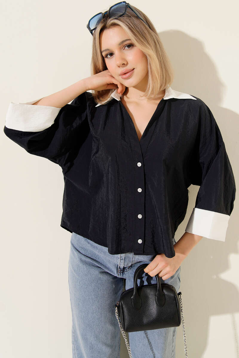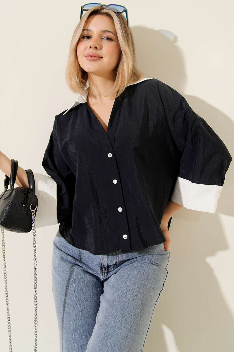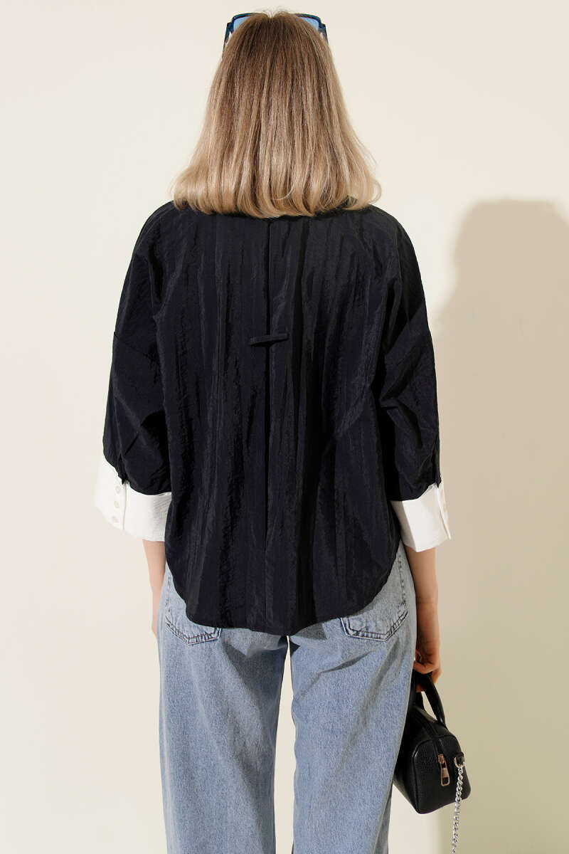 Duble Kol Oversize Kısa Gömlek Lacivert