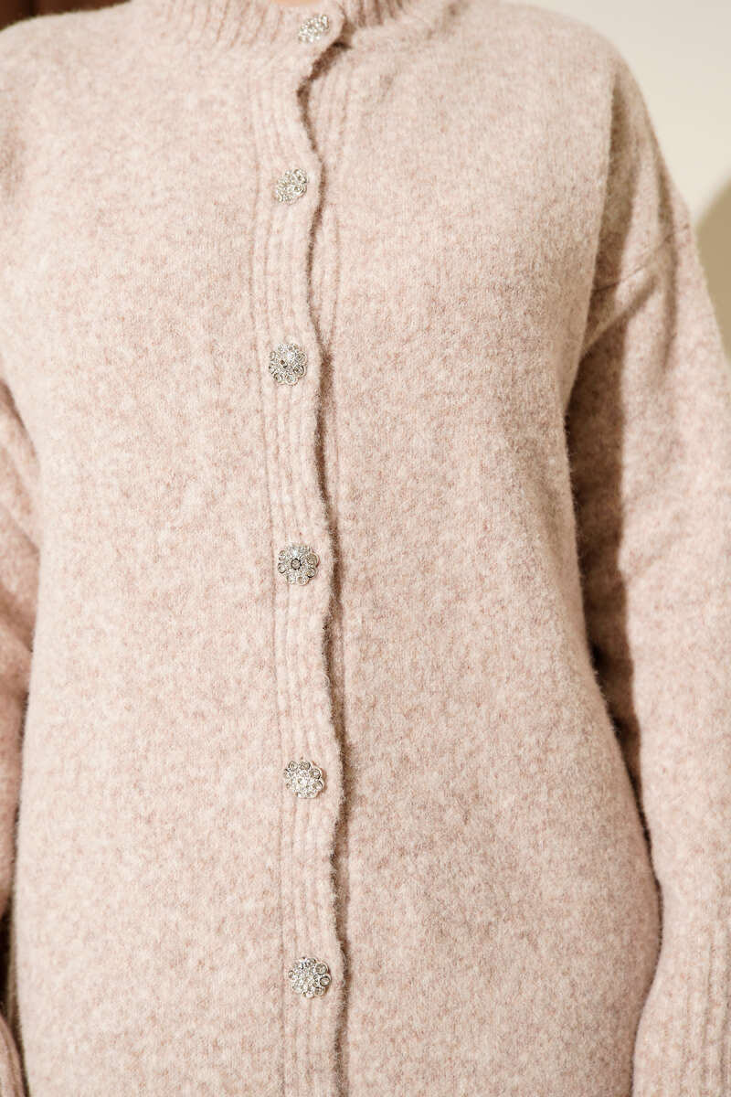 Düşük Omuz Düğmeli Triko Hırka Bej