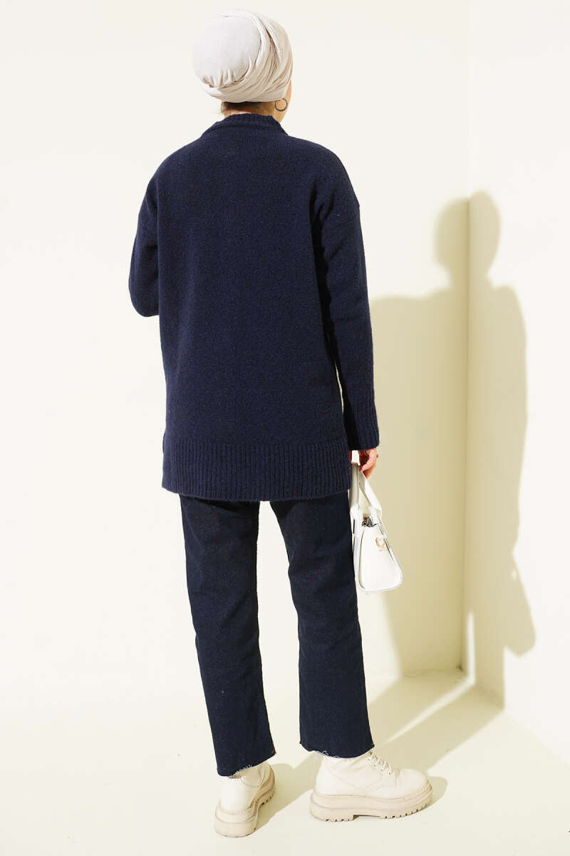 Bisiklet Yaka Sakal Detaylı Kazak Siyah