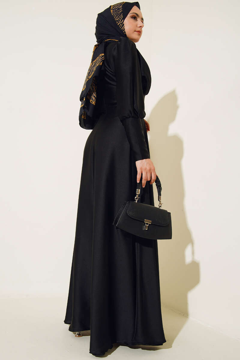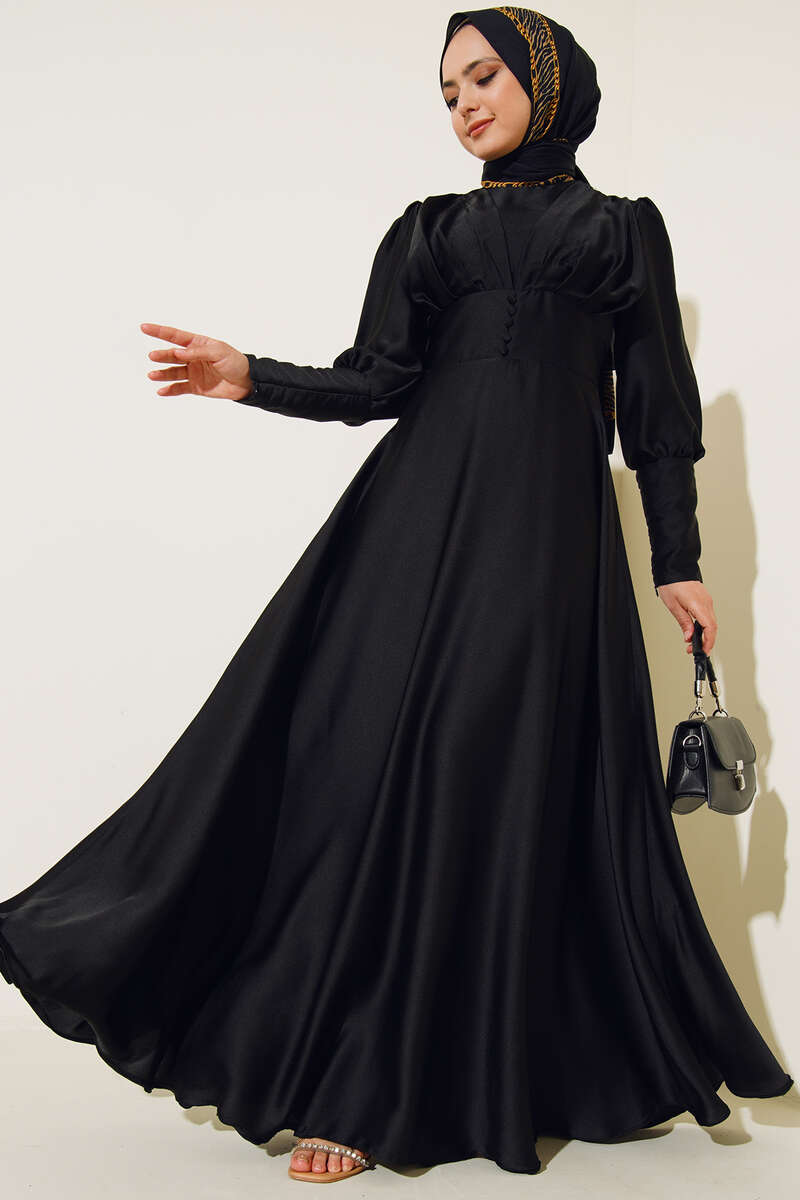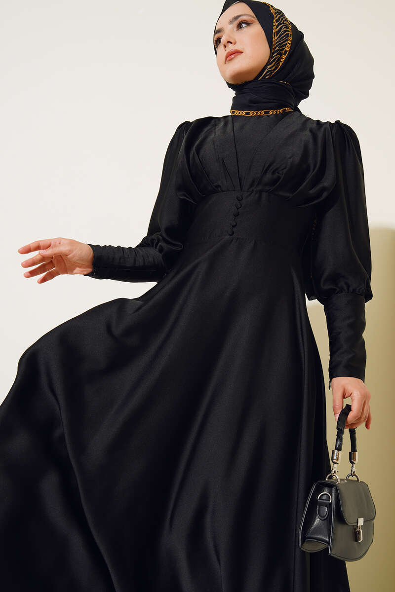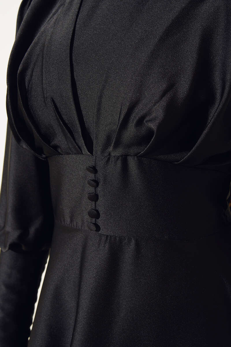 Düğme Detaylı Bileği Fermuarlı Elbise Siyah