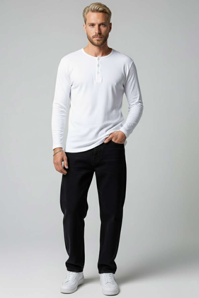 Düğme Detaylı Erkek Sweatshirt Siyah