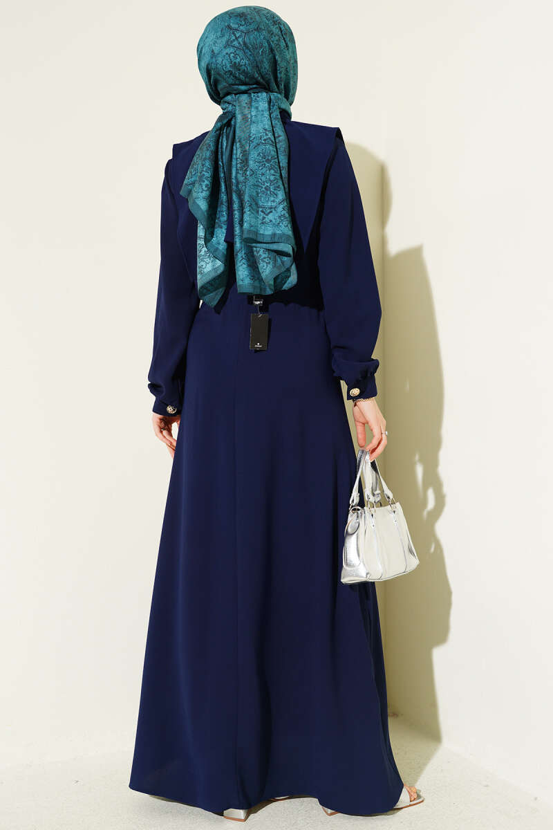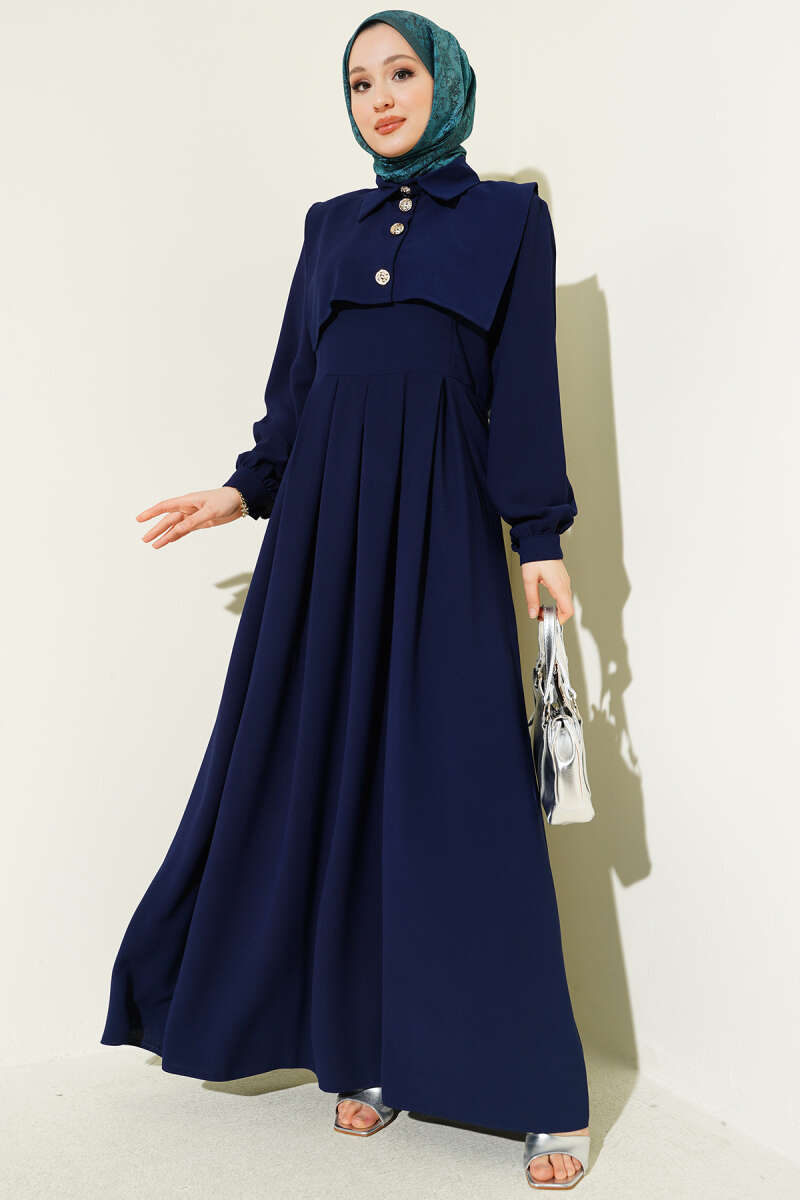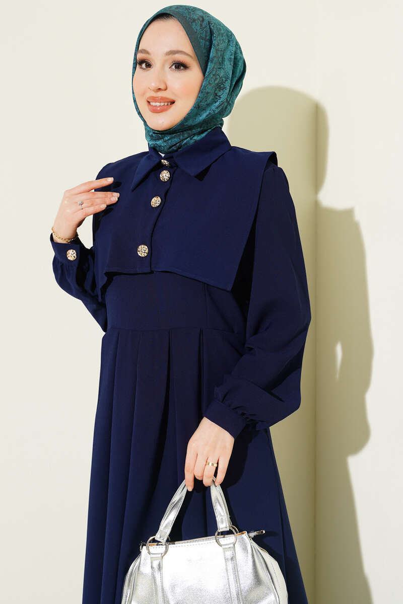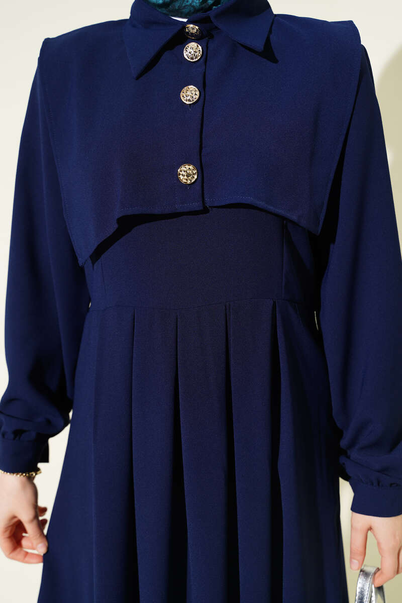 Düğme Detaylı Jile Elbise Lacivert