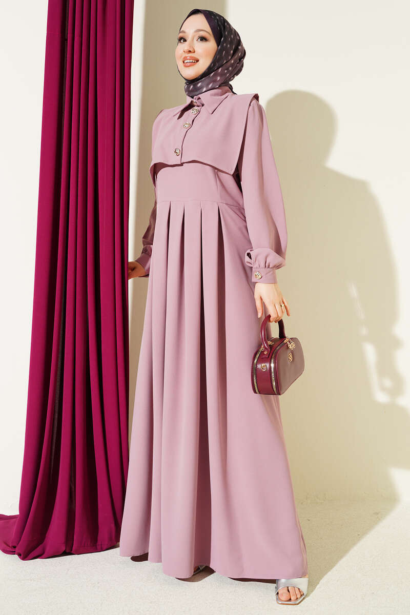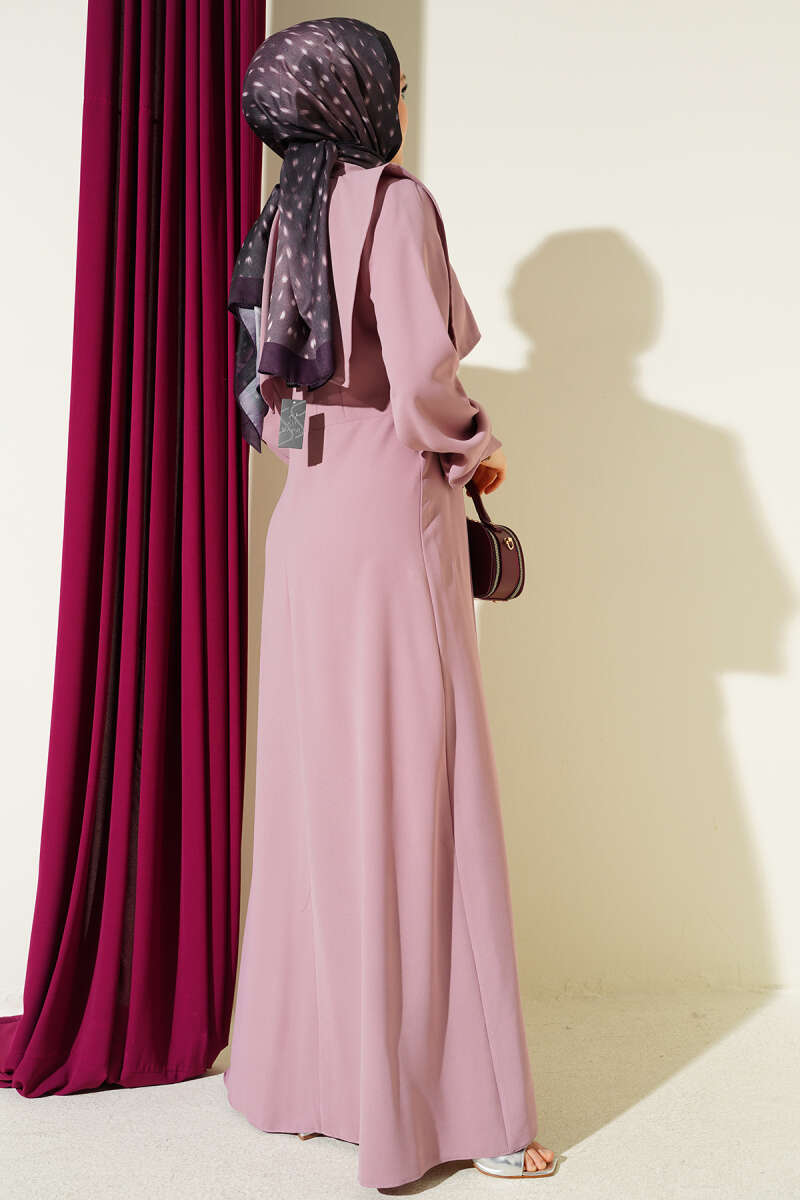 Düğme Detaylı Jile Elbise Pudra