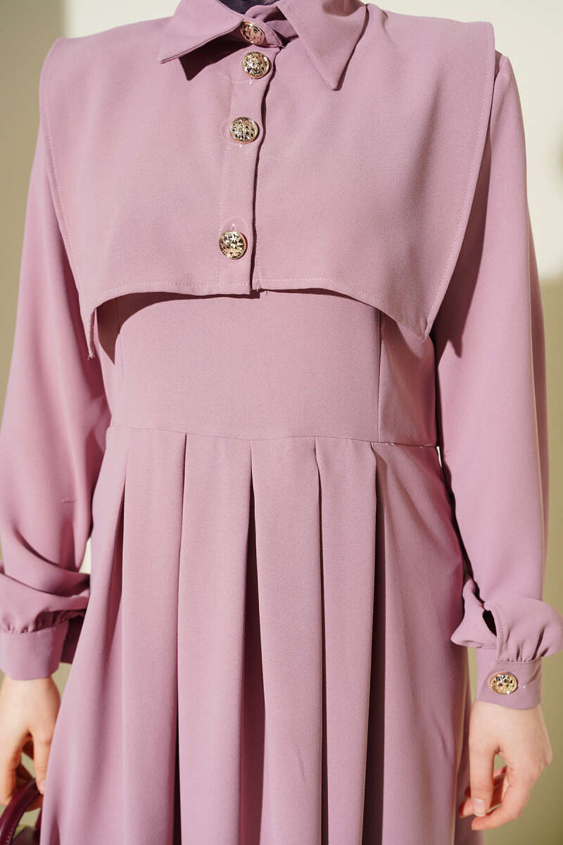 Düğme Detaylı Jile Elbise Lila