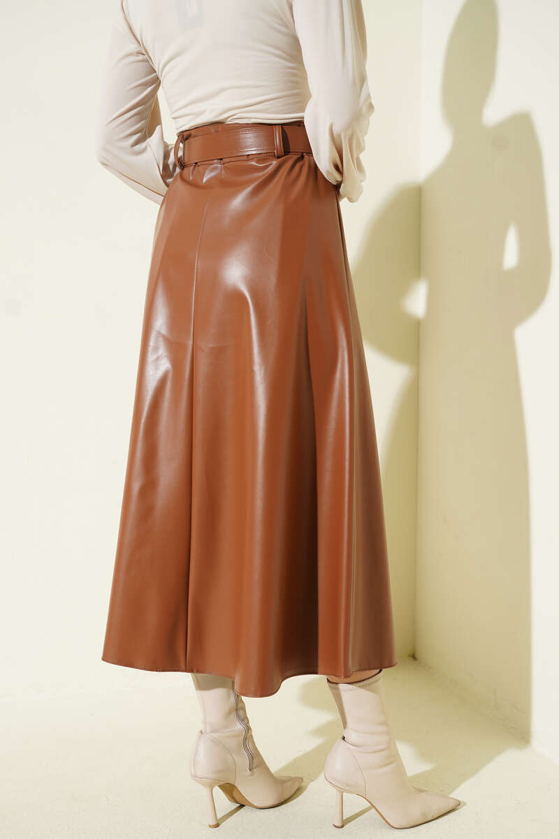 Parça Detaylı Bağlamalı Scuba Etek Kahve