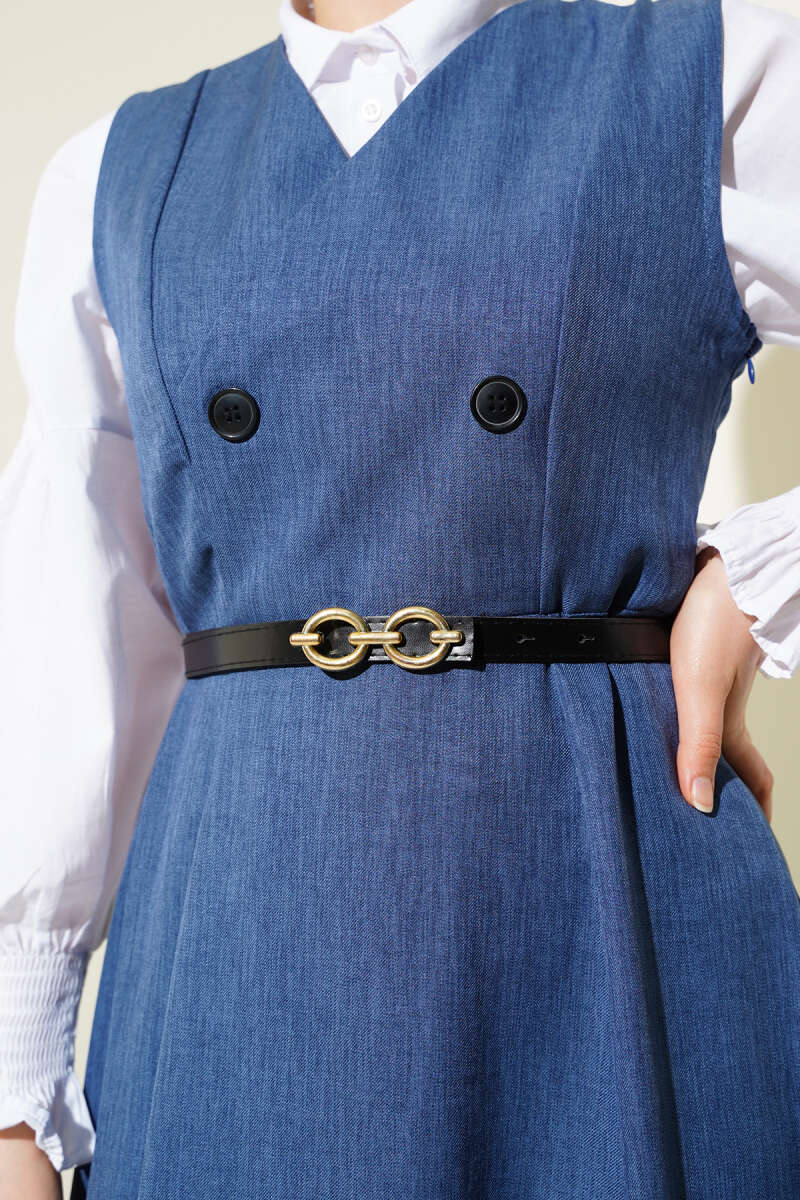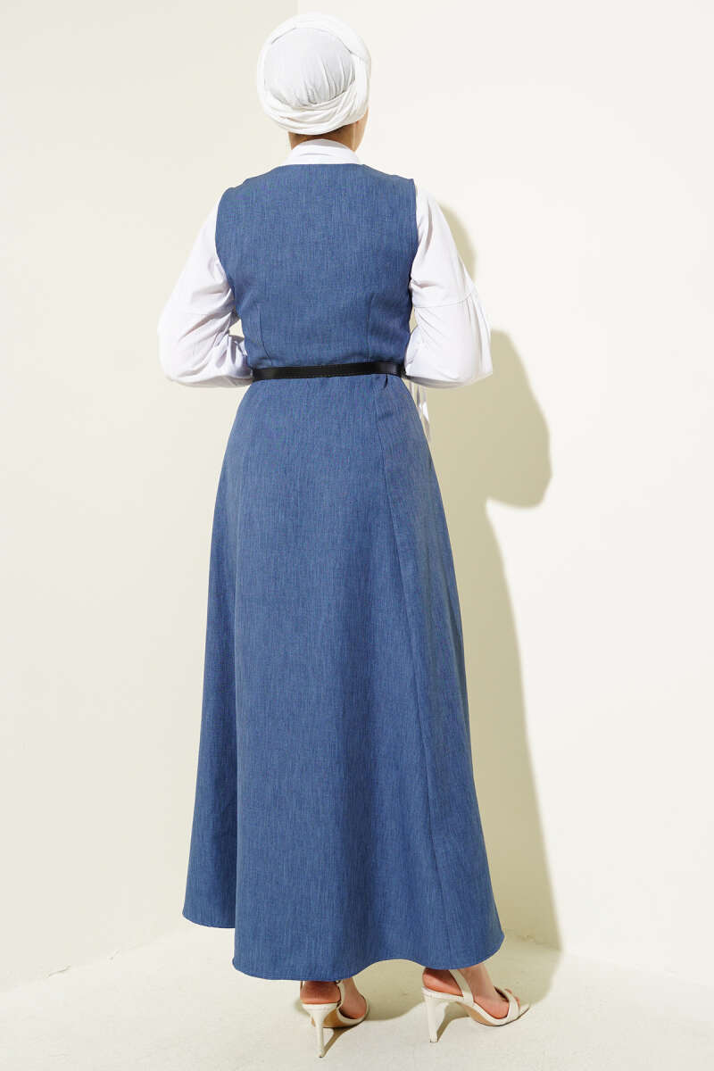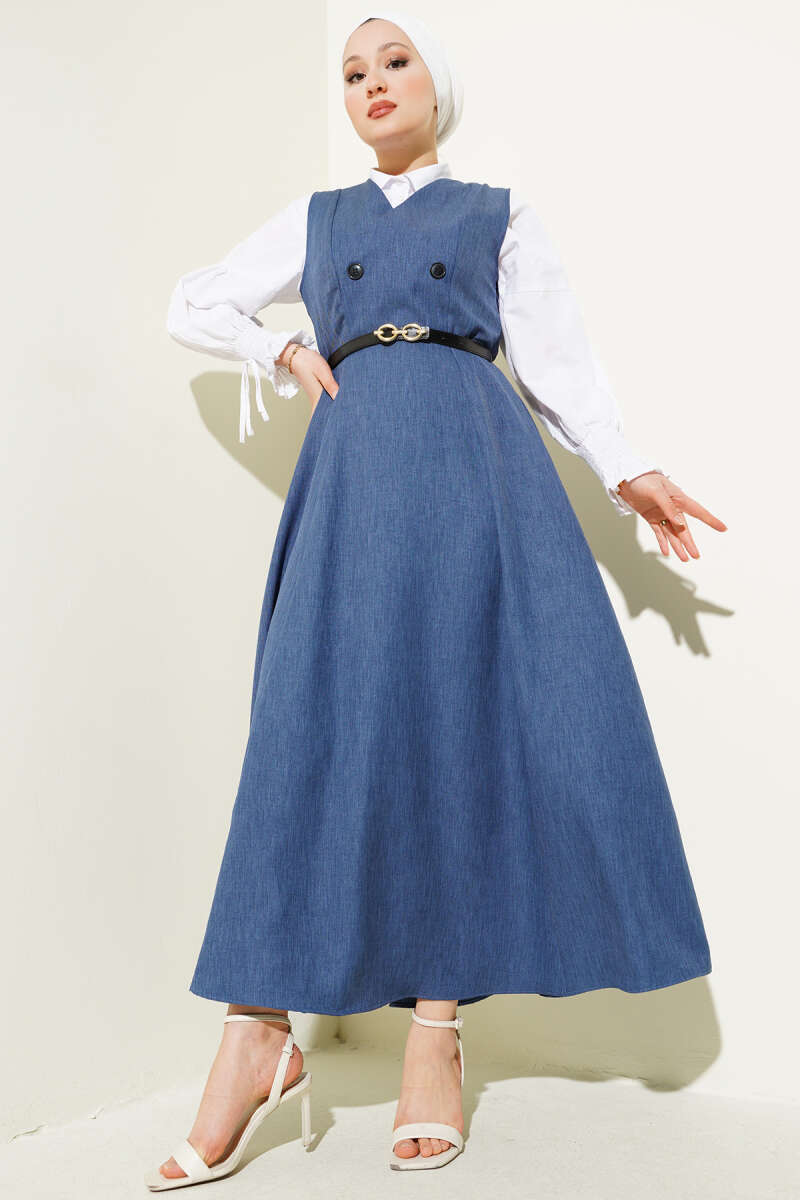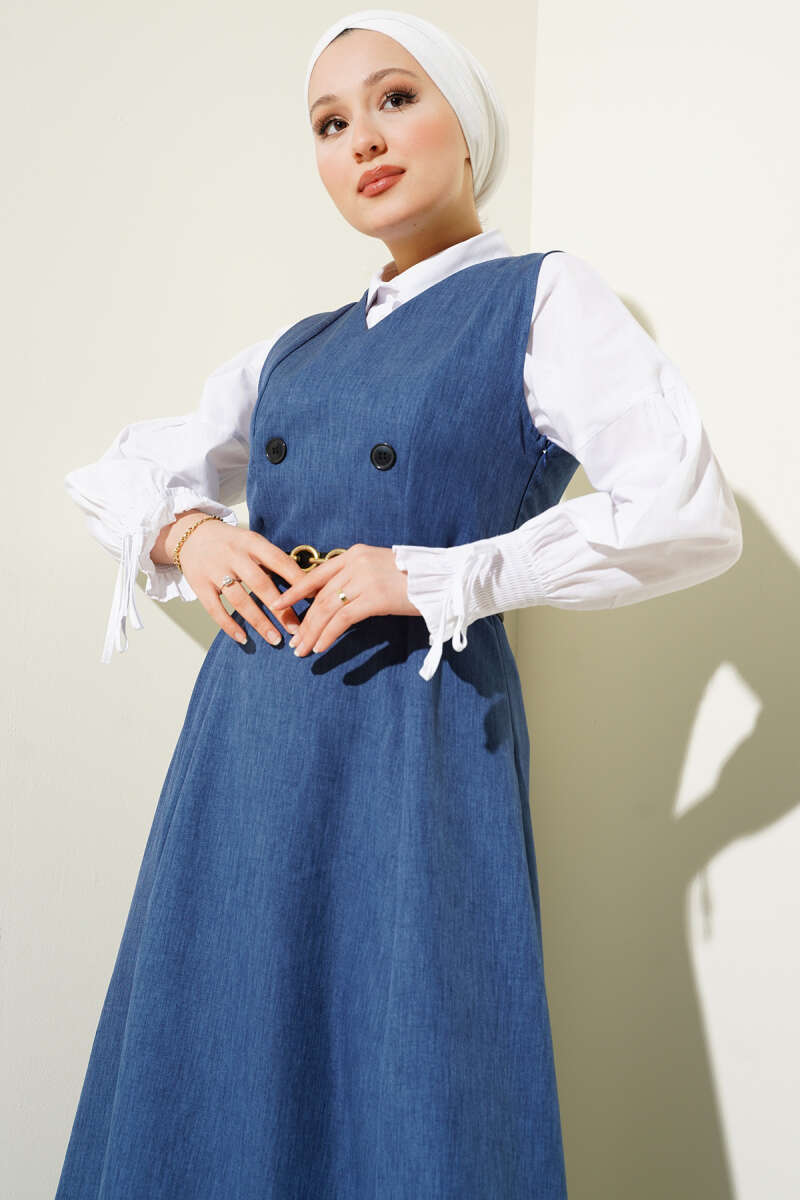 Tek Cepli Askılı Jile Kot Elbise Mavi