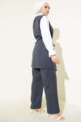 Dikiş Detaylı Basic Triko İkili Takım Füme