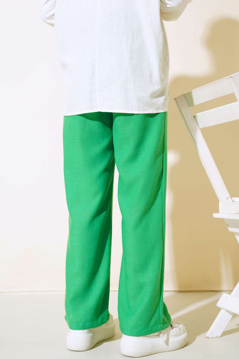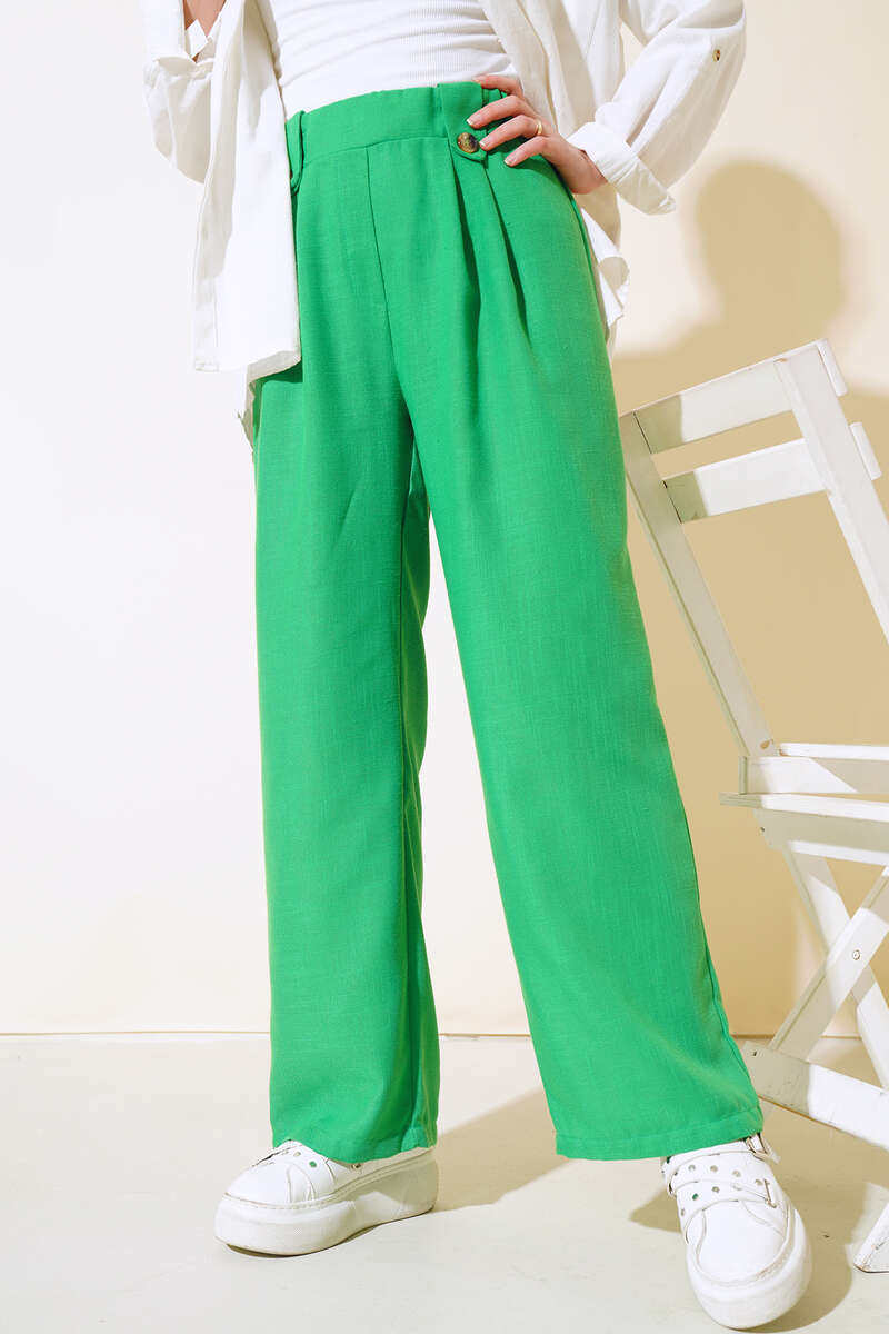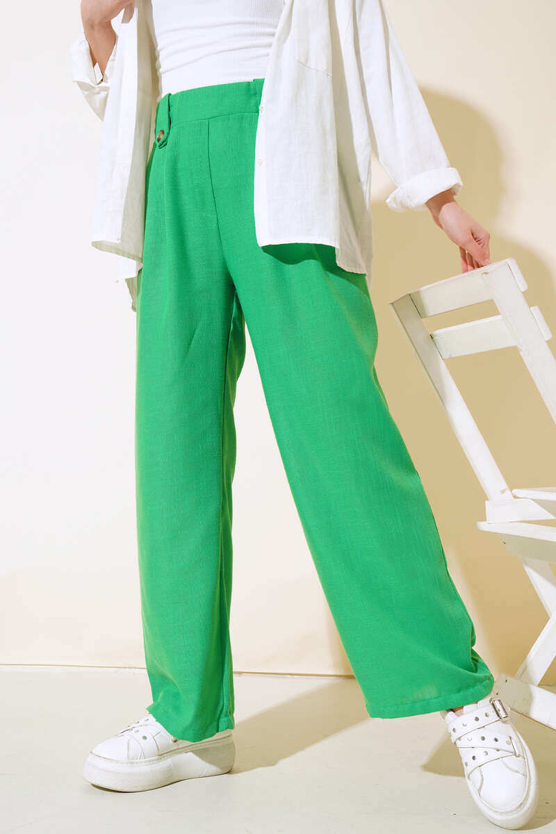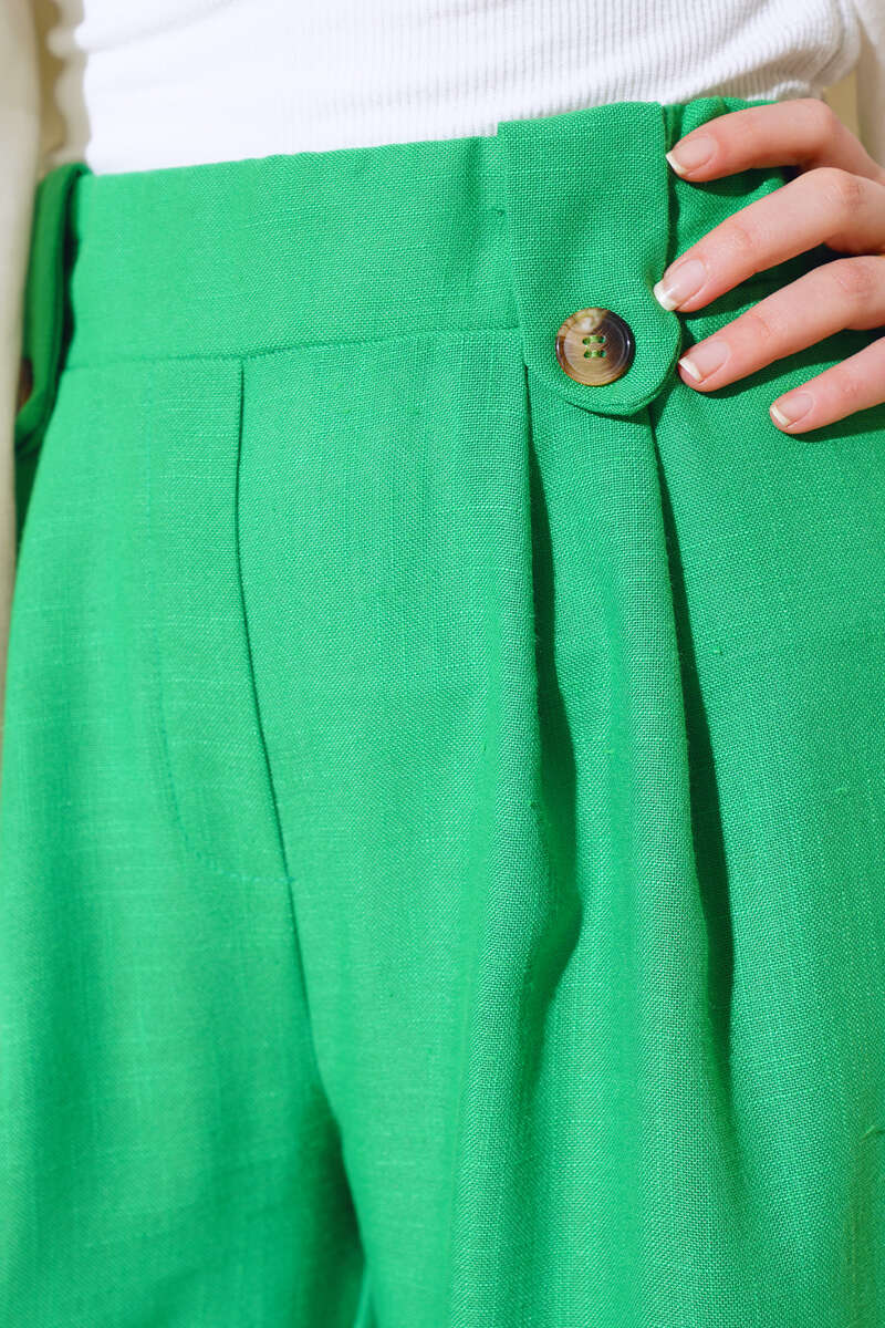Düğme Detaylı Keten Salaş Pantolon Yeşil