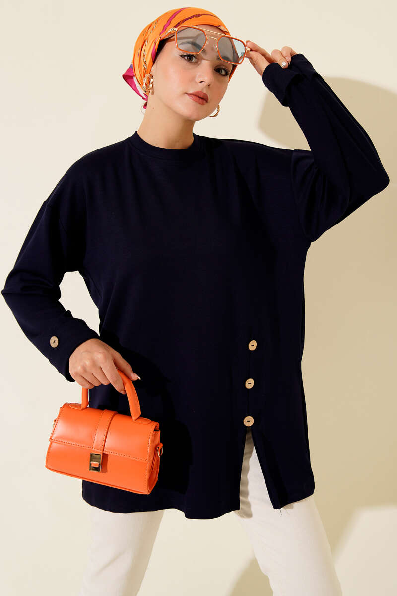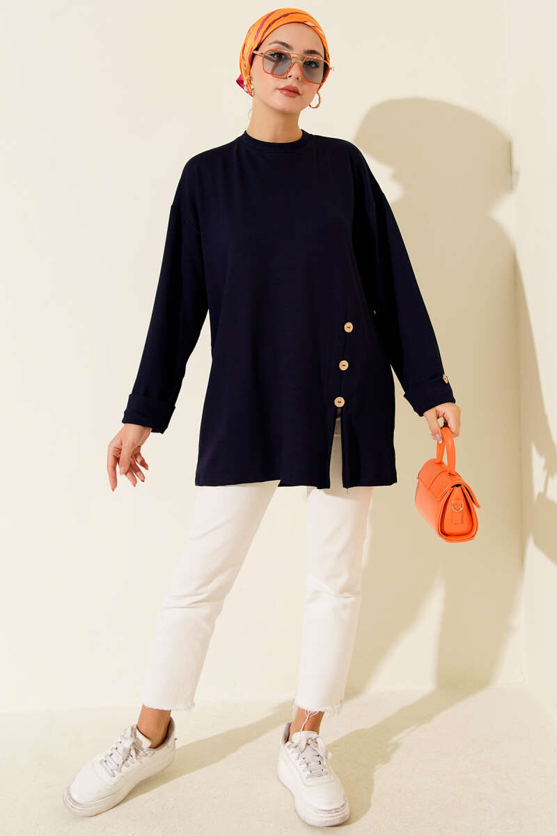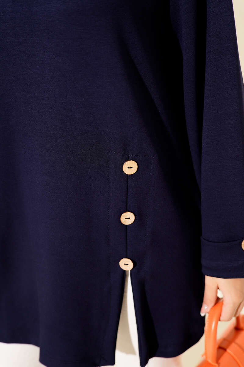 Çizgi Kabartmalı Merserize Triko Tunik Lacivert