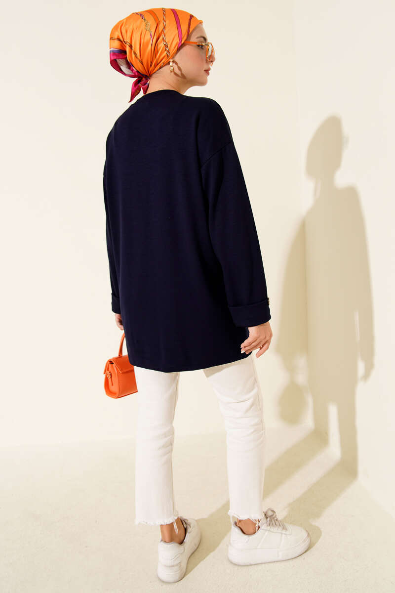 Gold Düğmeli Triko Kısa Hırka Lacivert