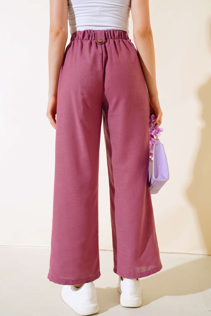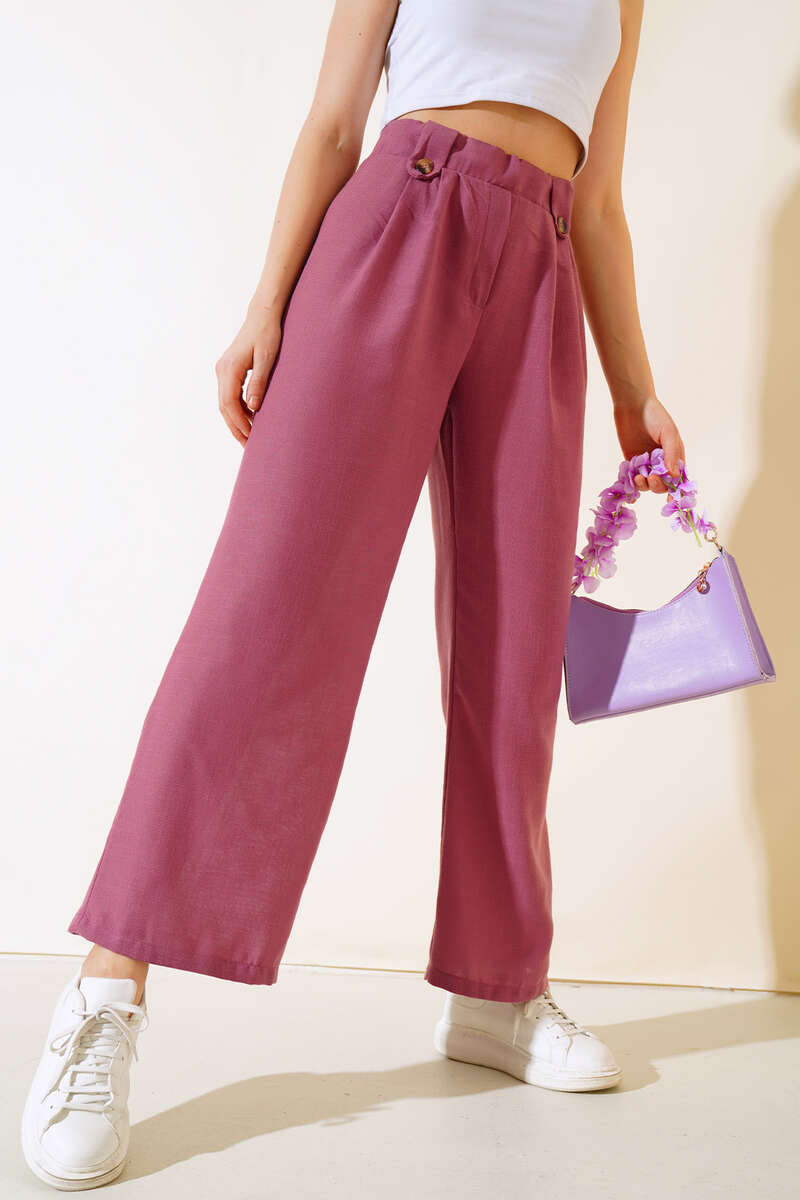 Düğme Detaylı Salaş Pantolon Magenta
