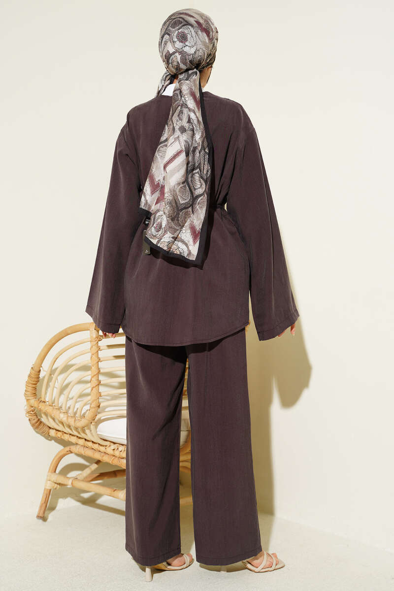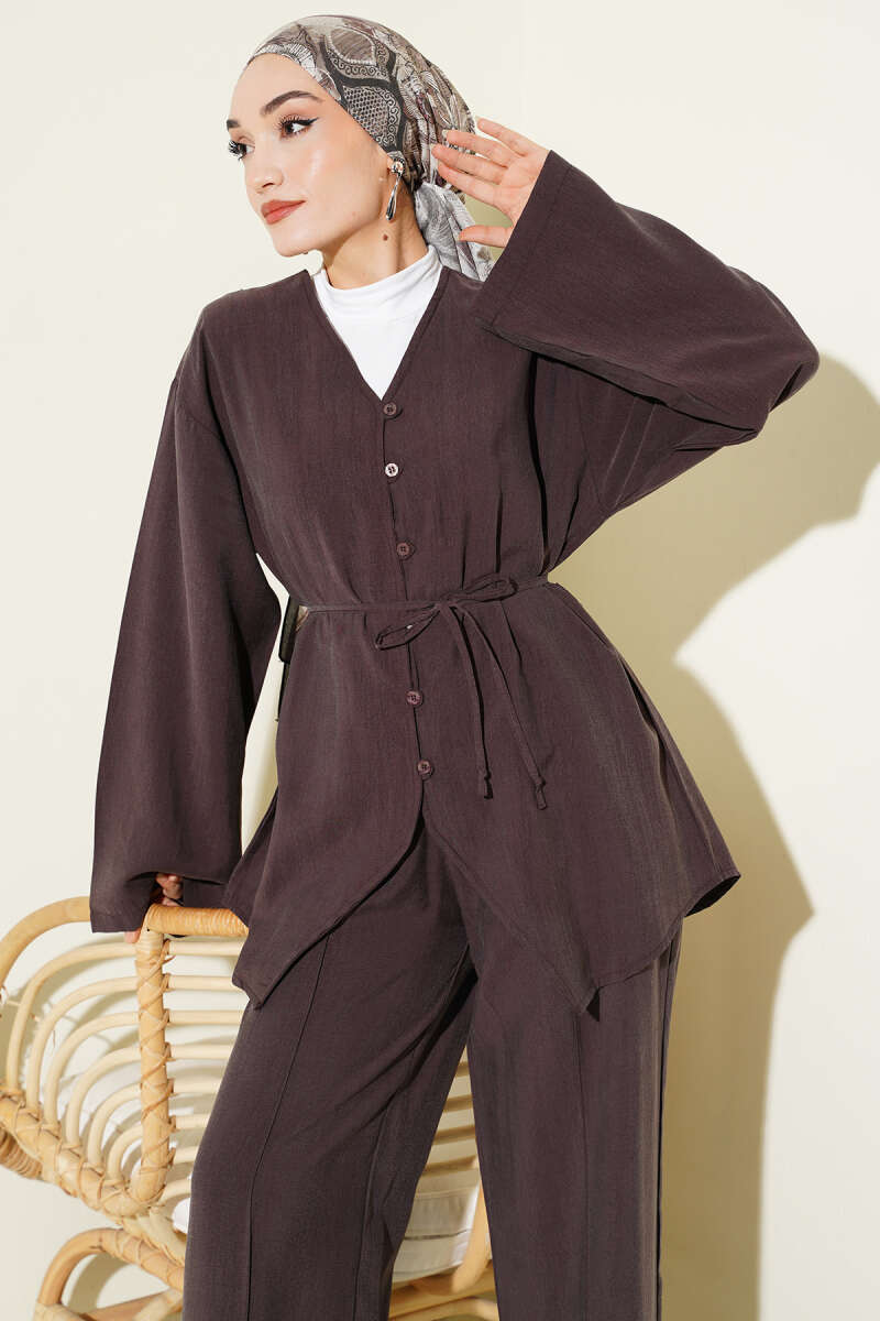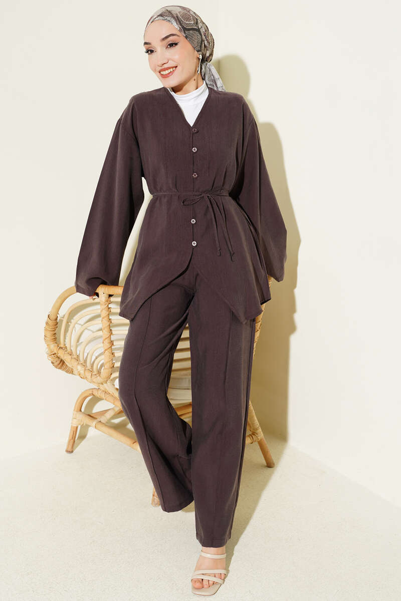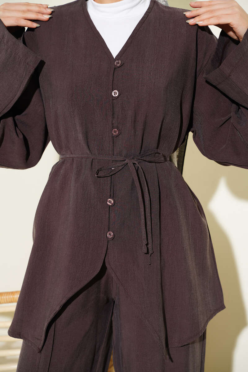 Düğme Detaylı Tensel İkili Takım Acı Kahve