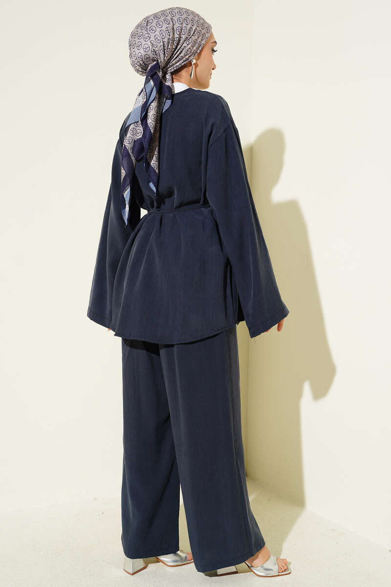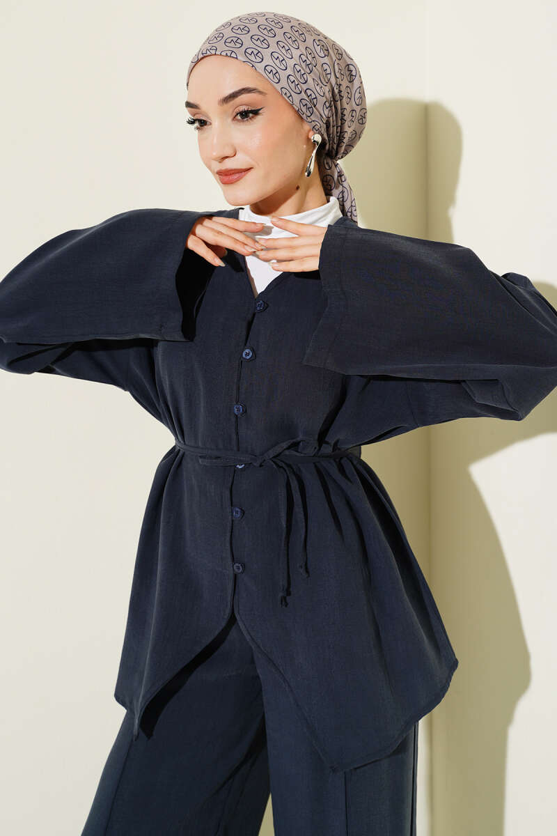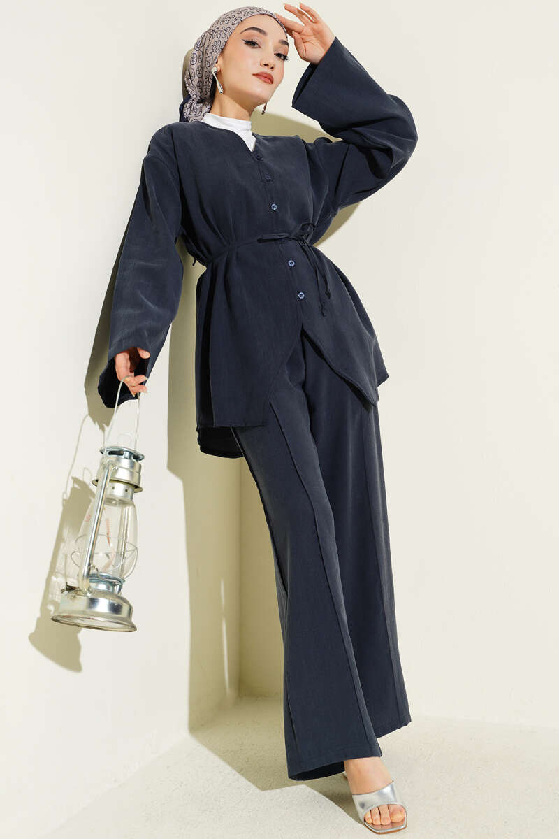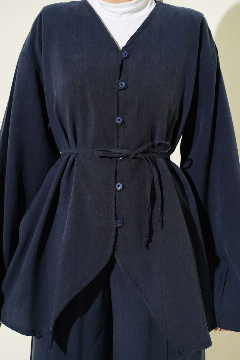 Düğme Detaylı Tensel İkili Takım Lacivert