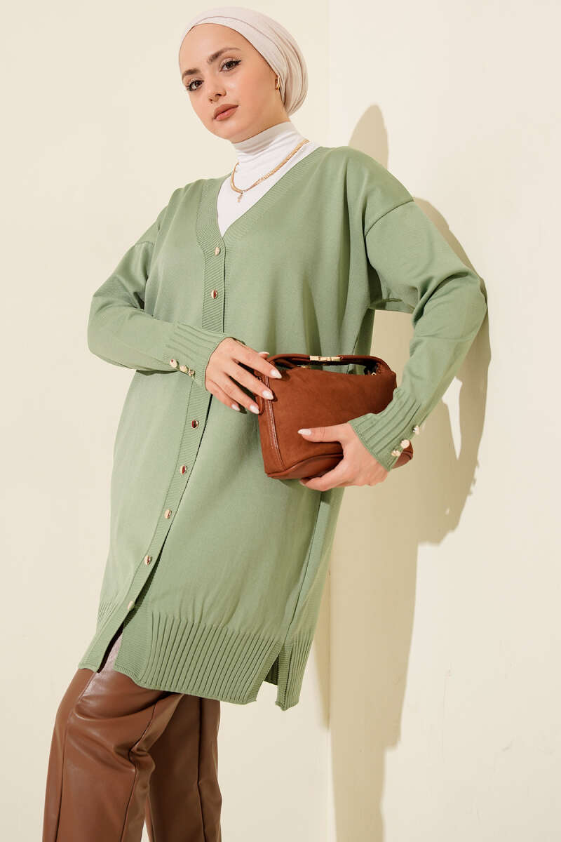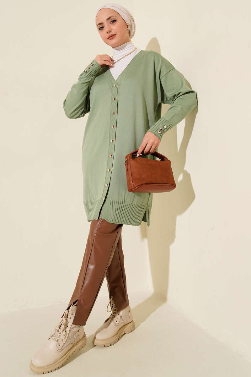 Önü Düğmeli Ayrobin Bordo Uzun Hırka