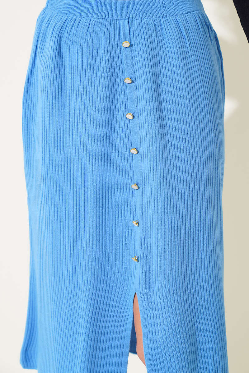 Çizgili Boydan Düğmeli Mini Elbise Saks