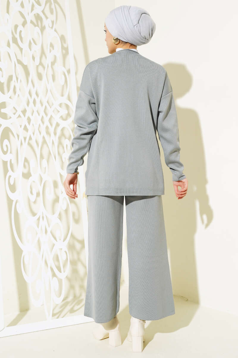 Taşlı Baklava Desen Triko İkili Takım Buz Mavisi