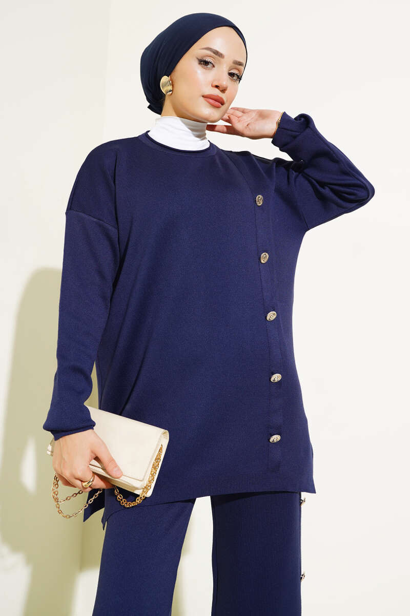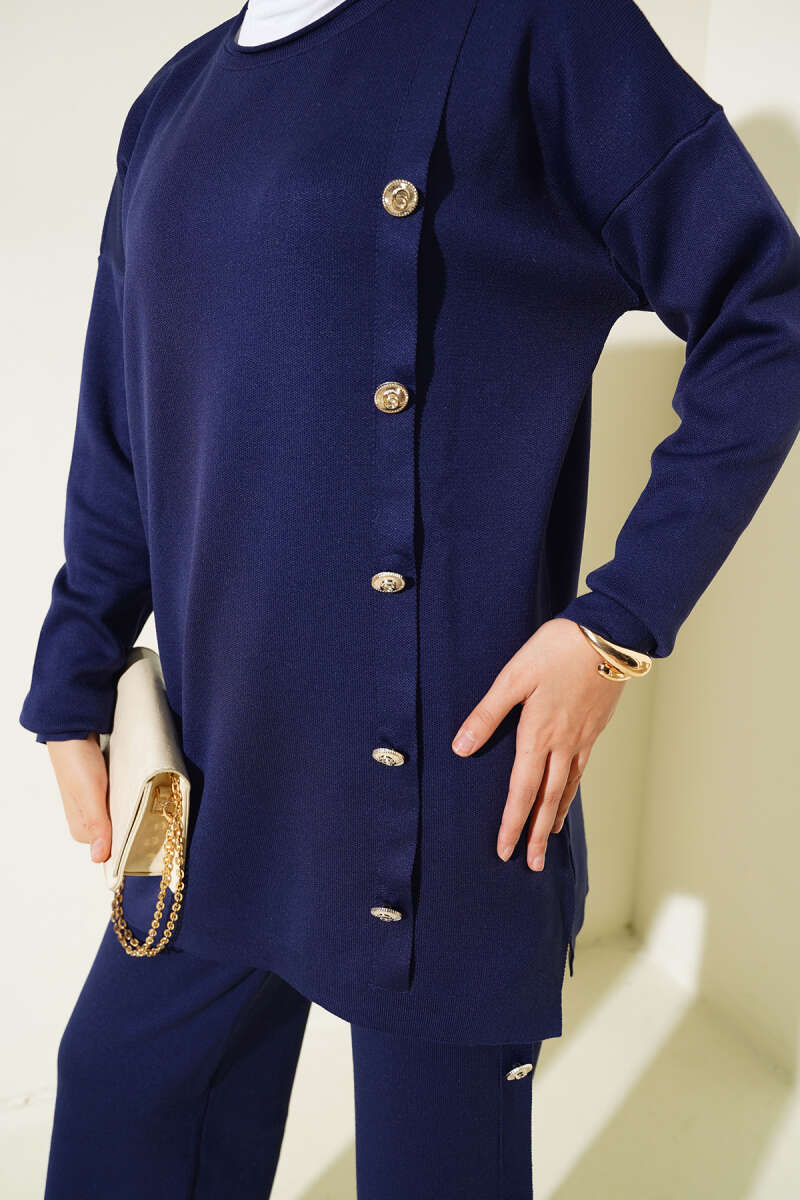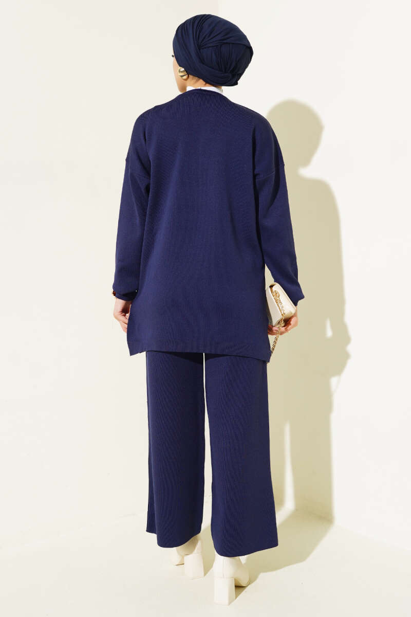 Taşlı Baklava Desen Triko İkili Takım Buz Mavisi