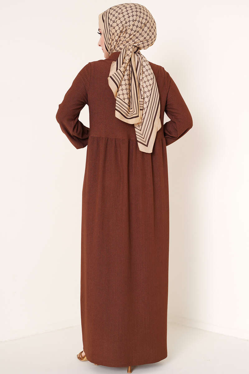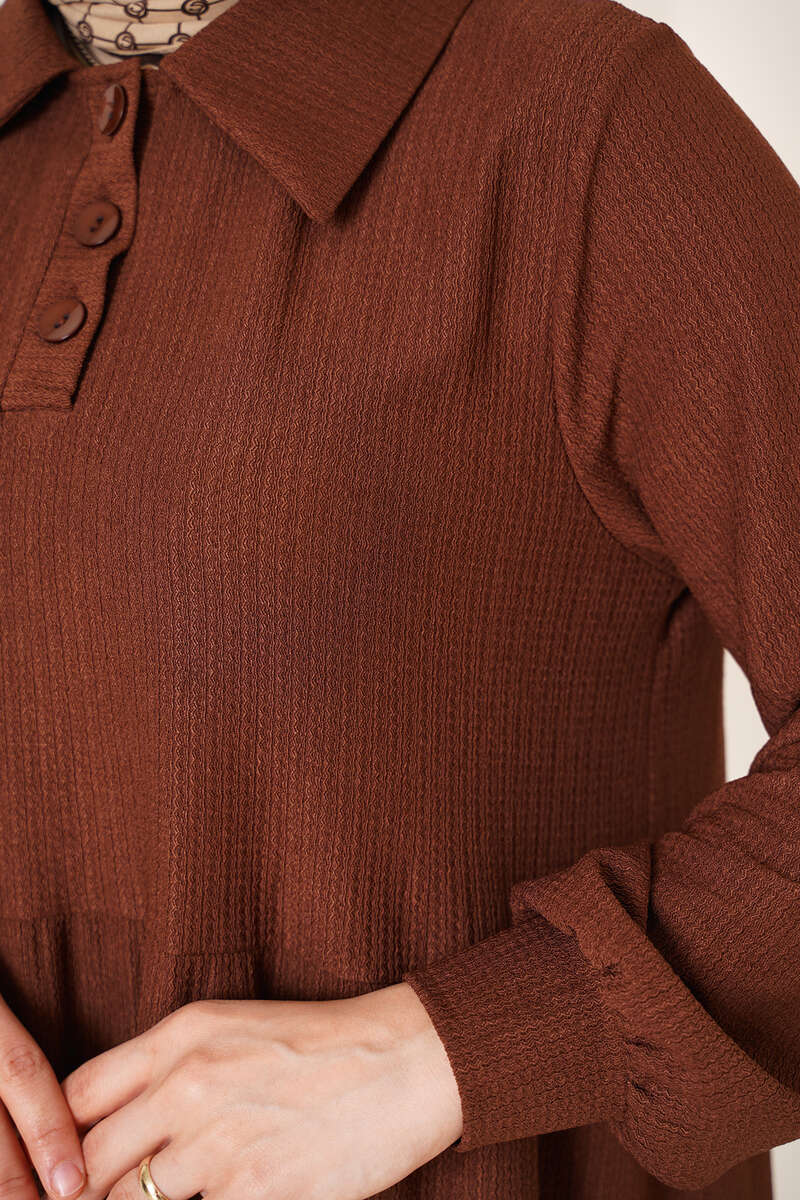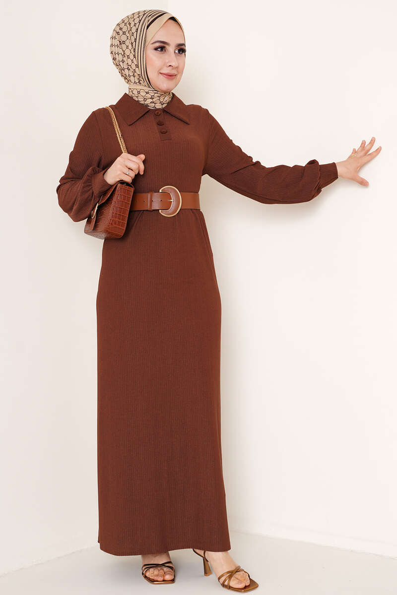 Yeni sezon bürümcük elbisemiz klasik yakadır. Yakasına eşlik eden üç adet düğmesi elbiseyi şık bir görünüm kazandırmıştır. Sade ve rahat bir kombini tek parçada elde edeceğiniz elbisemiz renkleriyle sizi bekliyor. Kemer aksesuar olarak kullanılmıştır.