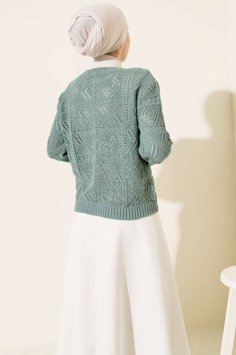 Düğmeli Ajurlu Kısa Triko Hırka Mint