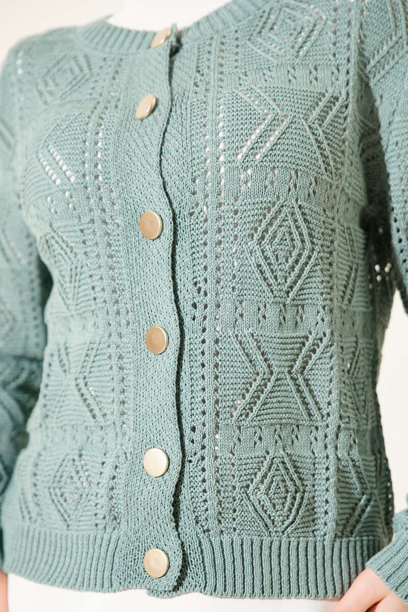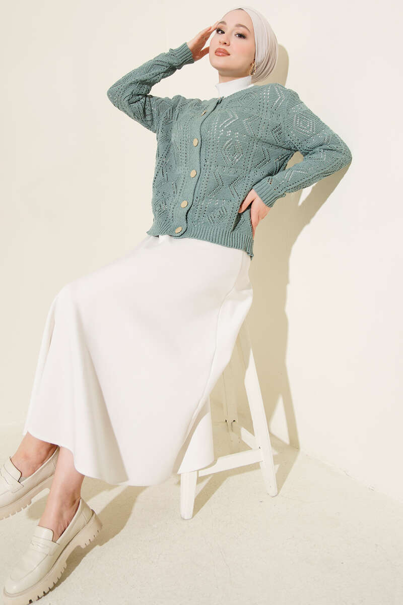 Düğmeli Ajurlu Kısa Triko Hırka Mint
