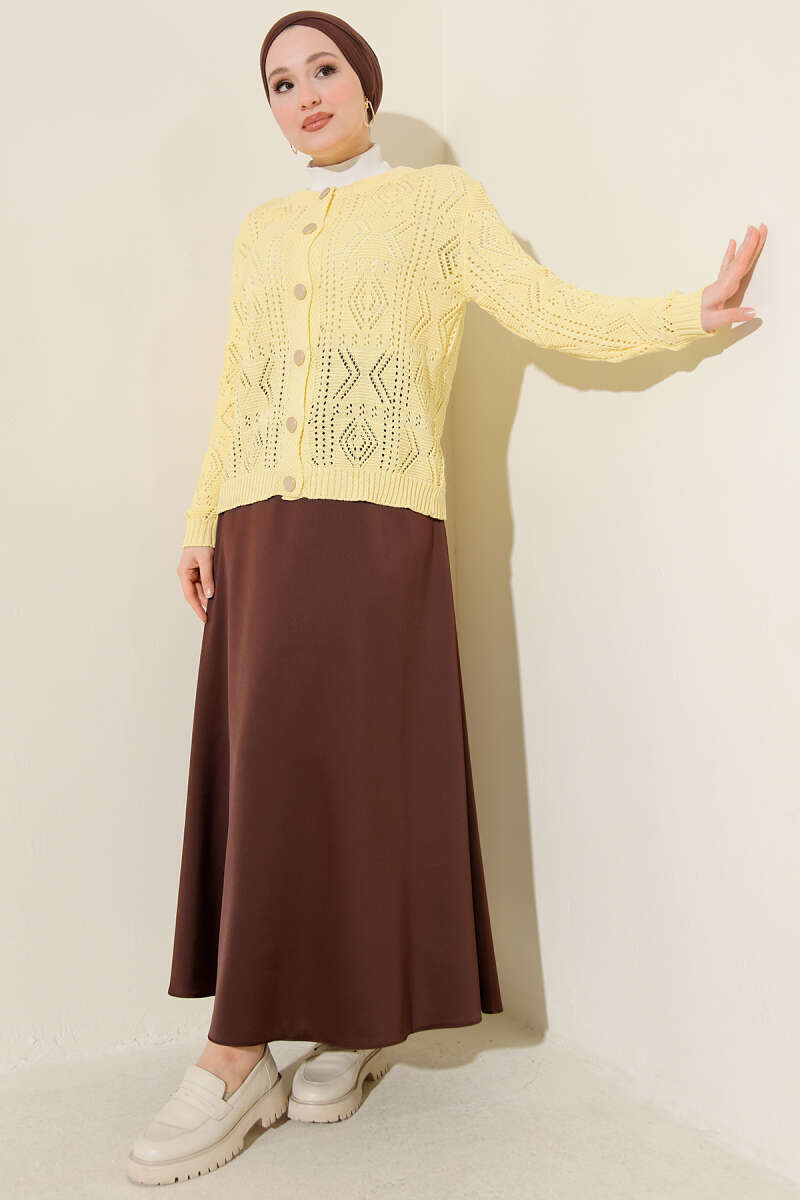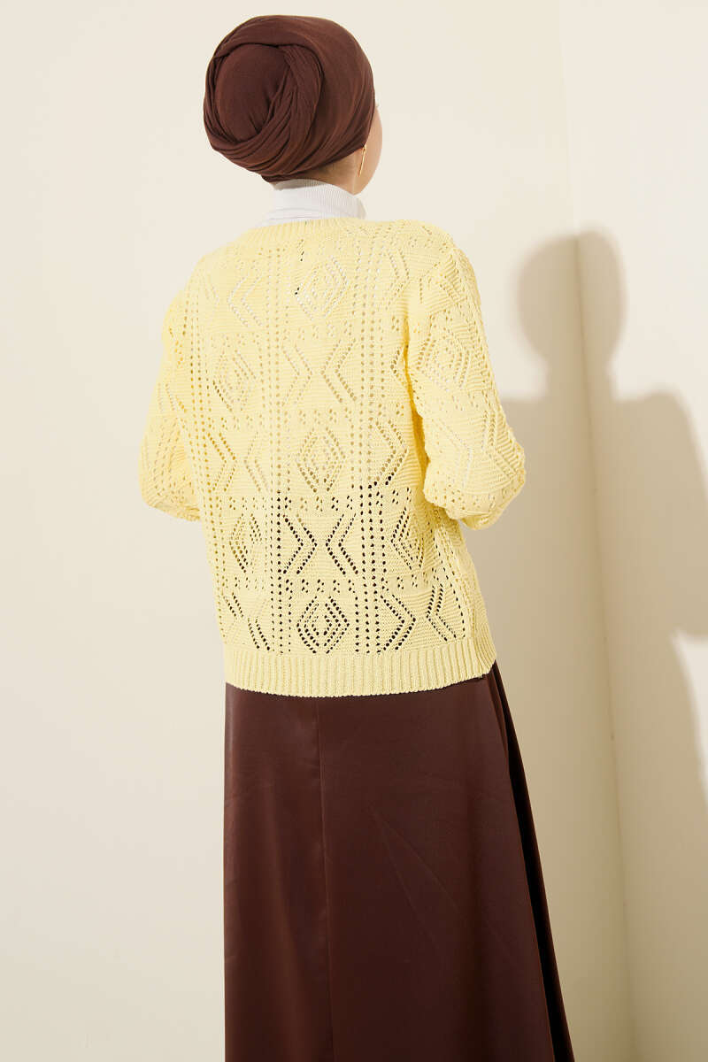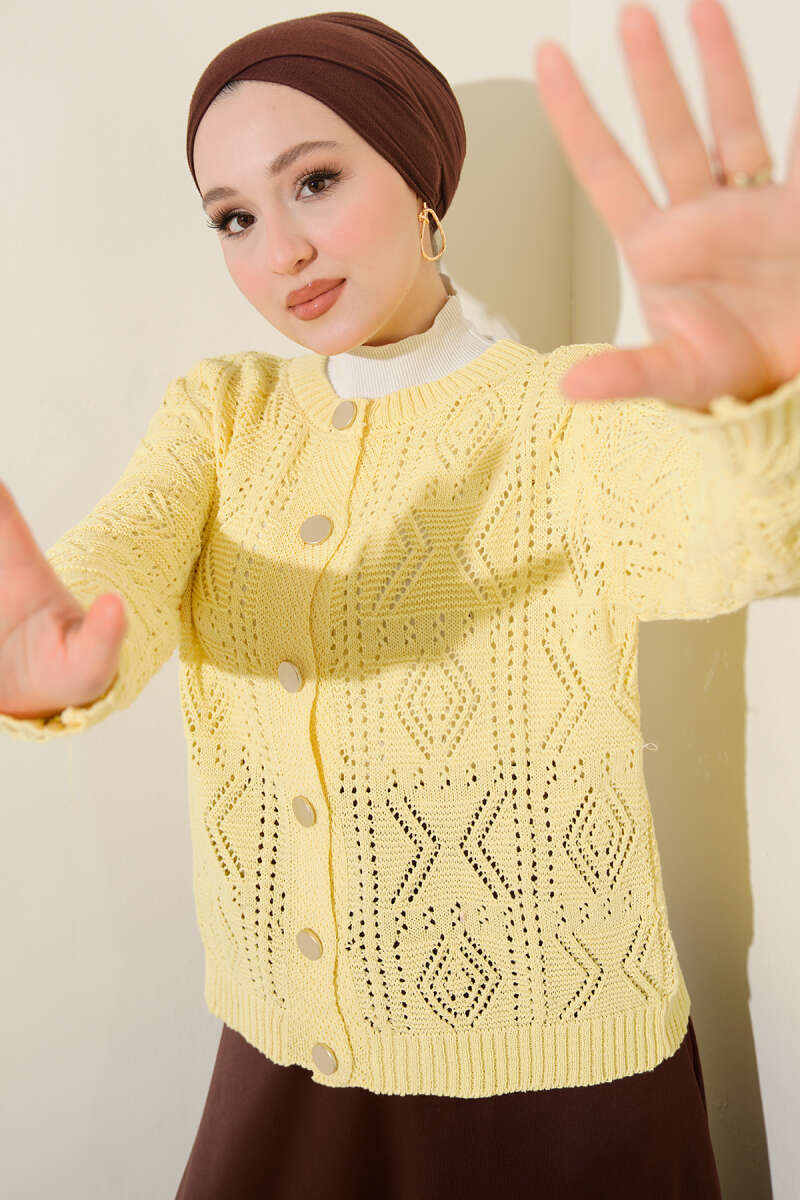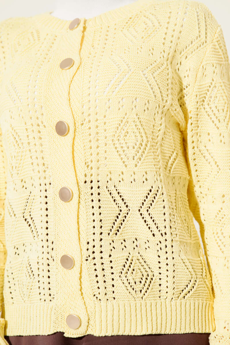 Düğmeli Ajurlu Kısa Triko Hırka Sarı