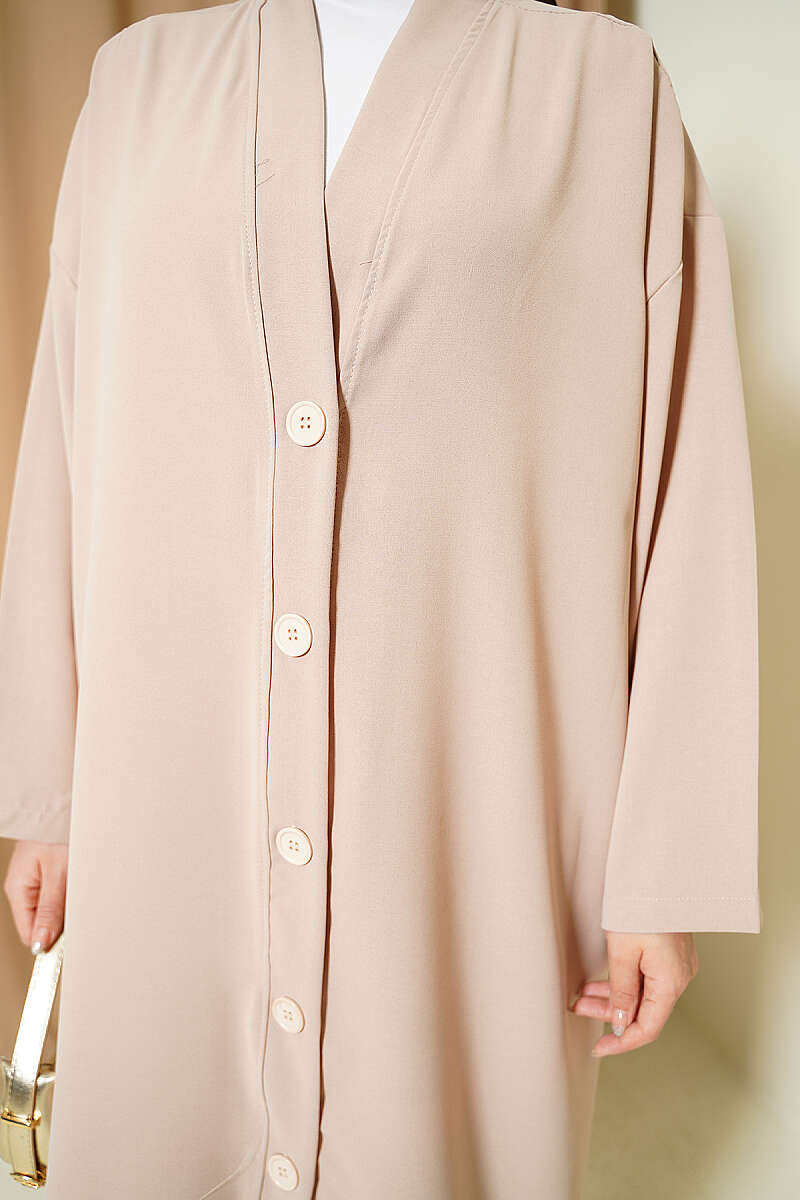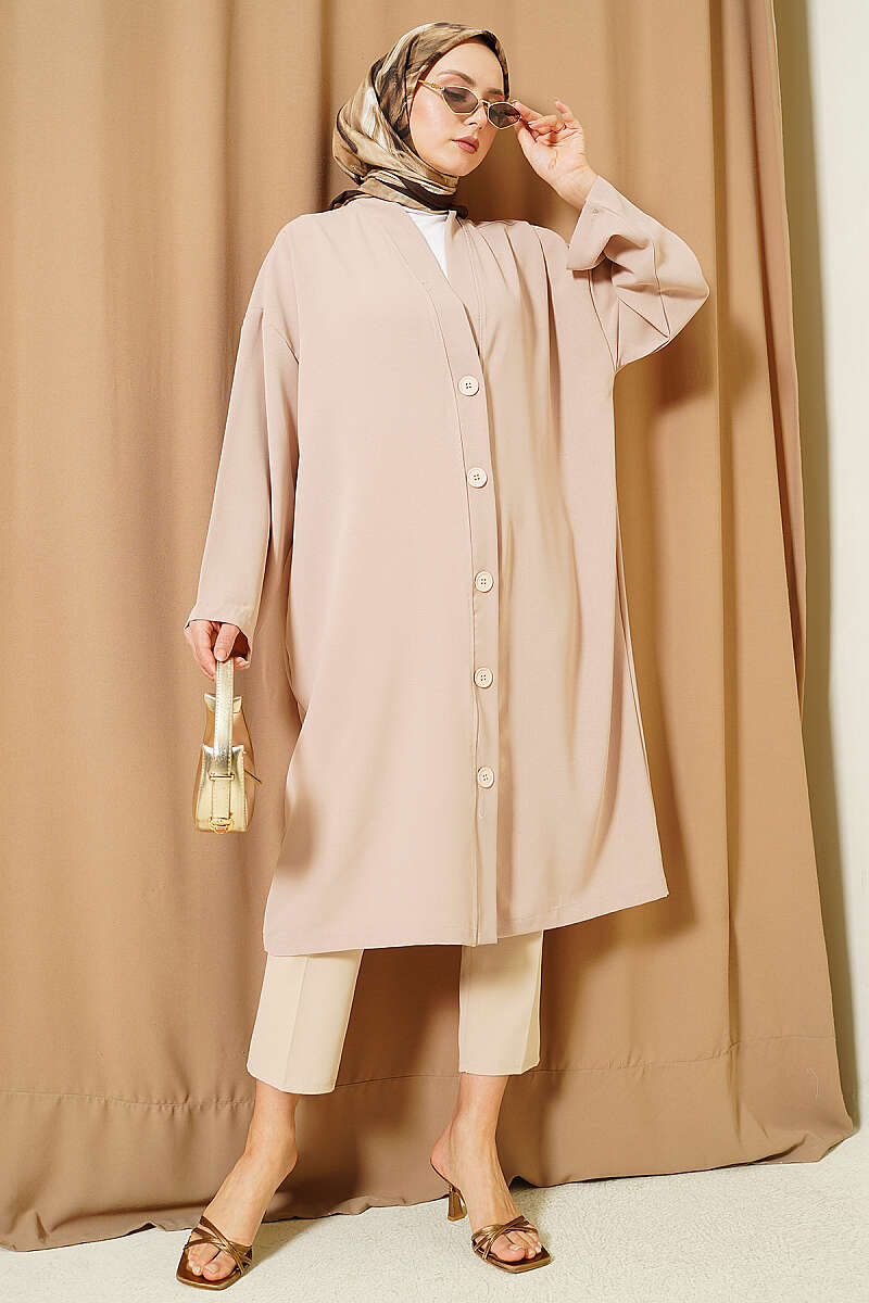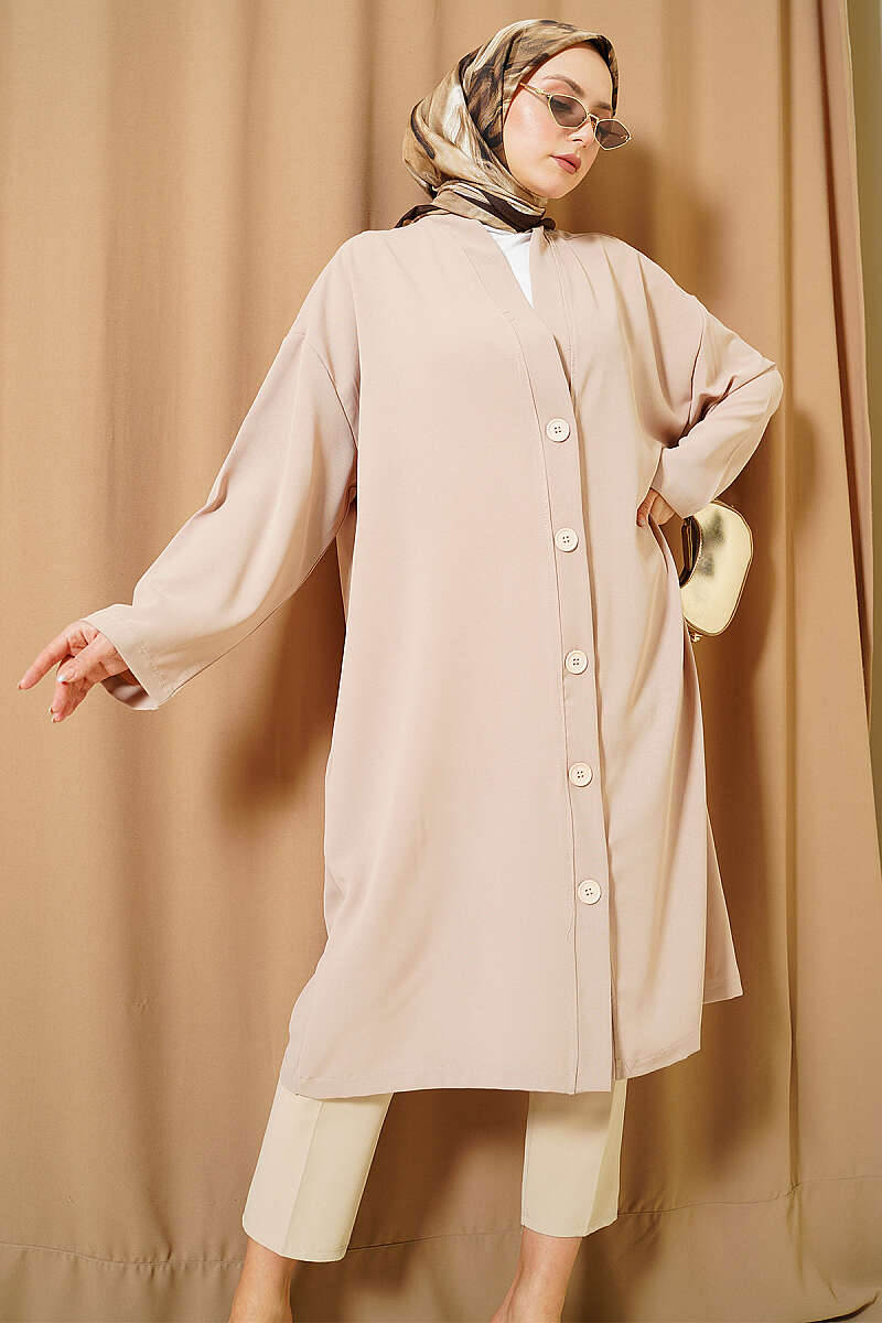 Düğmeli Araboy Salaş Hırka Bej