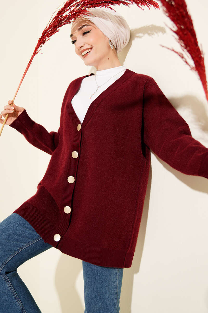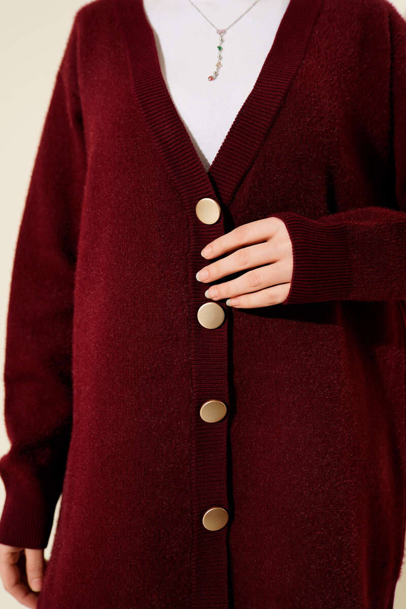 Gold Düğmeli Basic Sakallı Triko Hırka Kahve