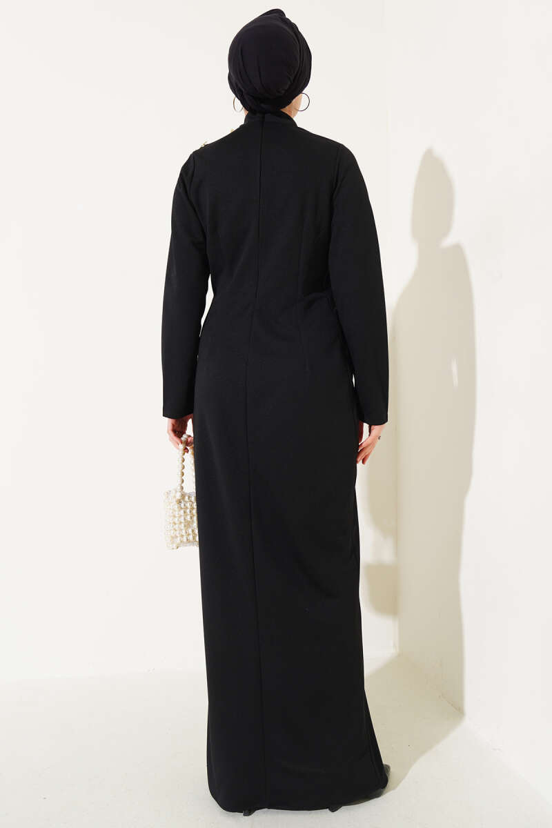 Omuz Pelerinli Taş Detaylı Abiye Elbise Siyah