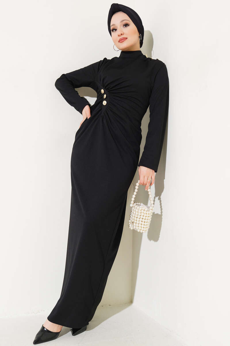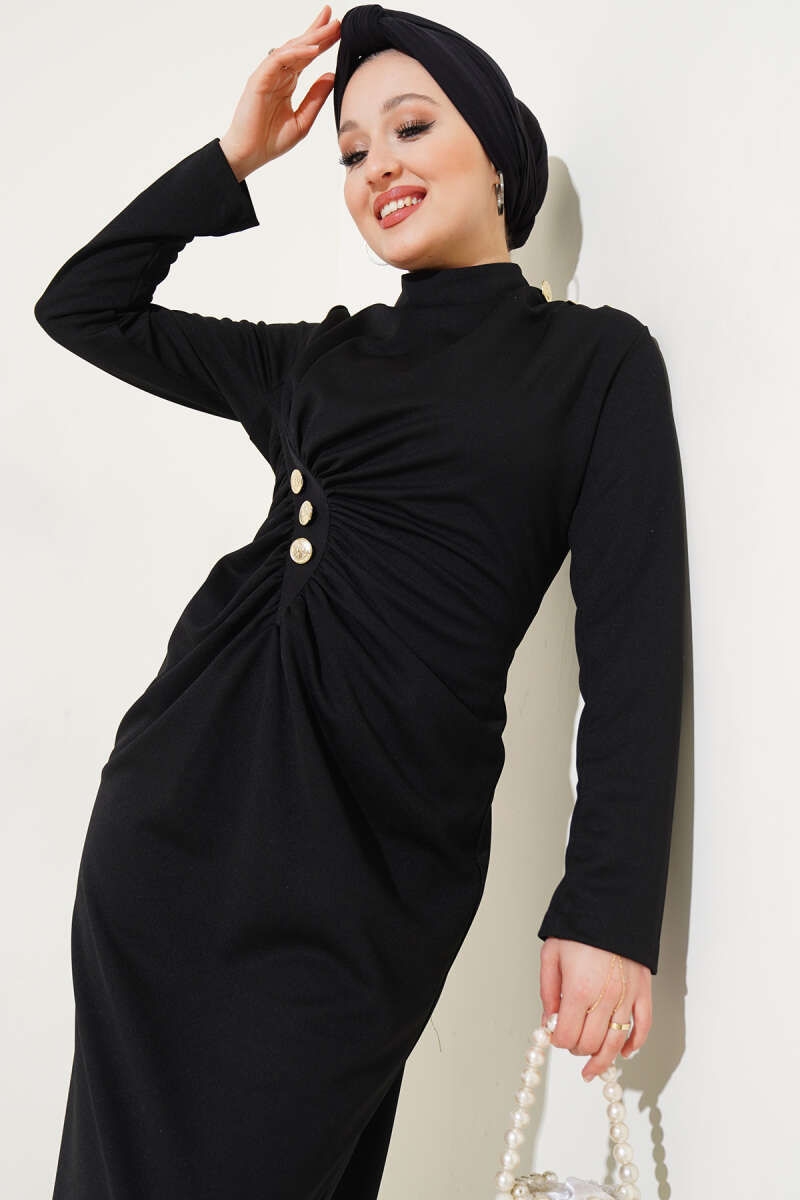 Gömlek Yaka Düğmeli Triko Elbise Siyah