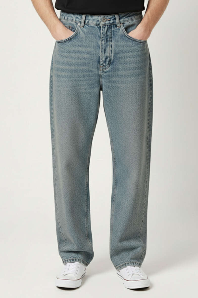 Baggy Bol Paça Erkek Kot Pantolon Mavi