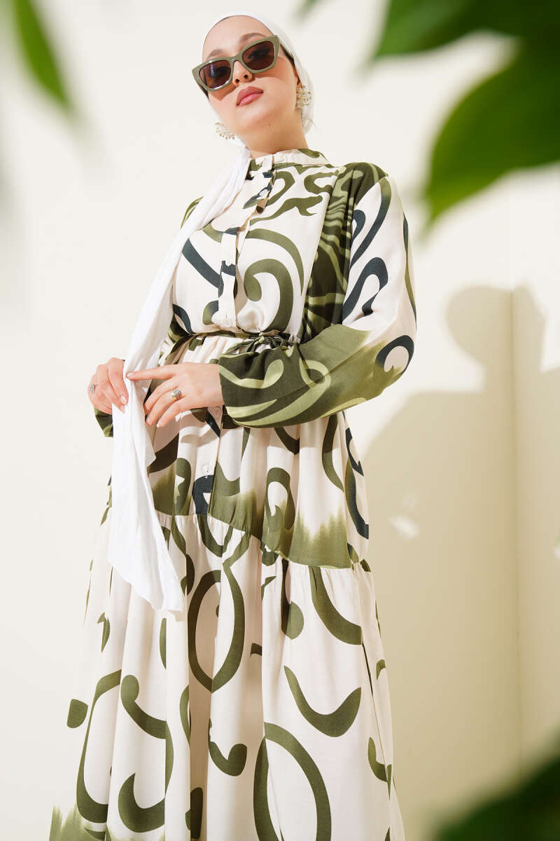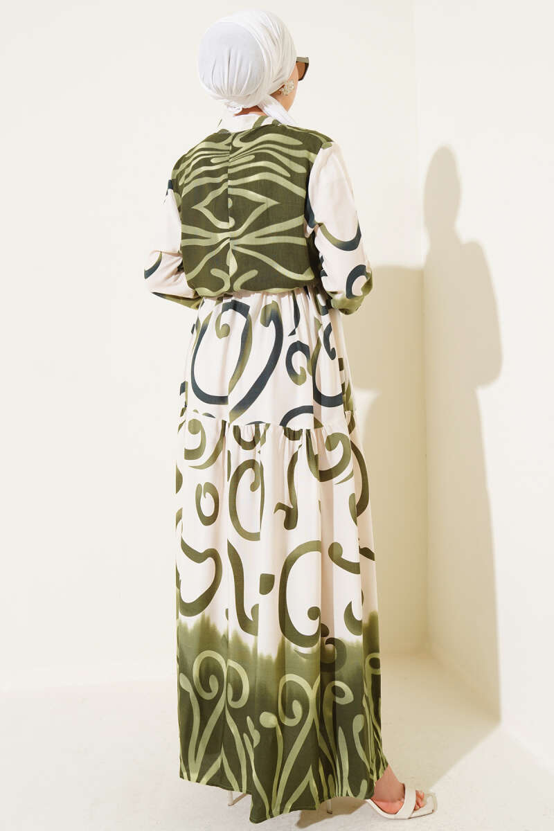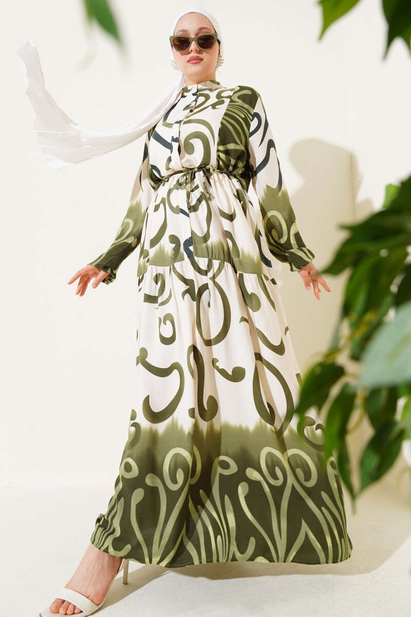 Bilek Bağlamalı Kuşaklı Abiye Elbise Haki
