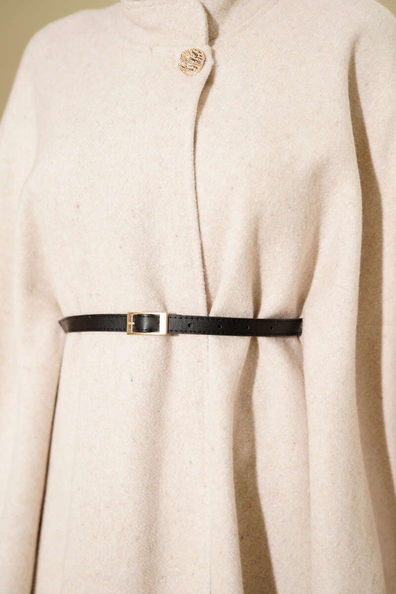 Kemerli Gold Düğmeli Kaşe Panço Antrasit